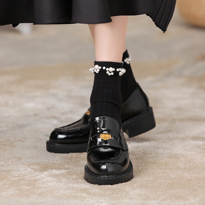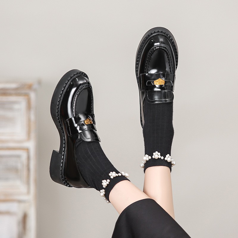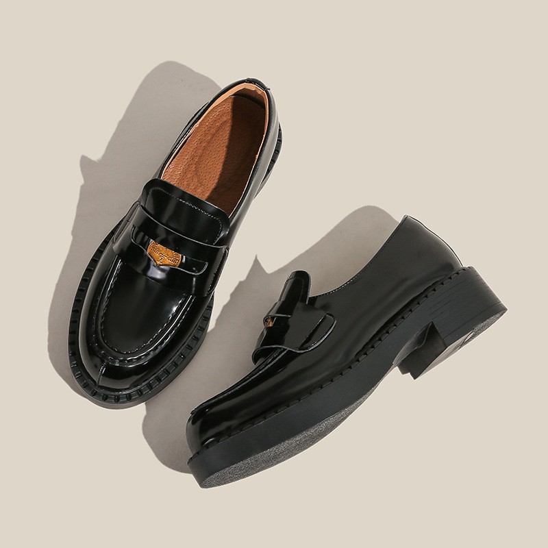 Thick-soled Casual Gold Coin Loafers Elegant Soft-soled Women’s Spring and Autumn Slip-on British-style Retro Small Leather Shoes