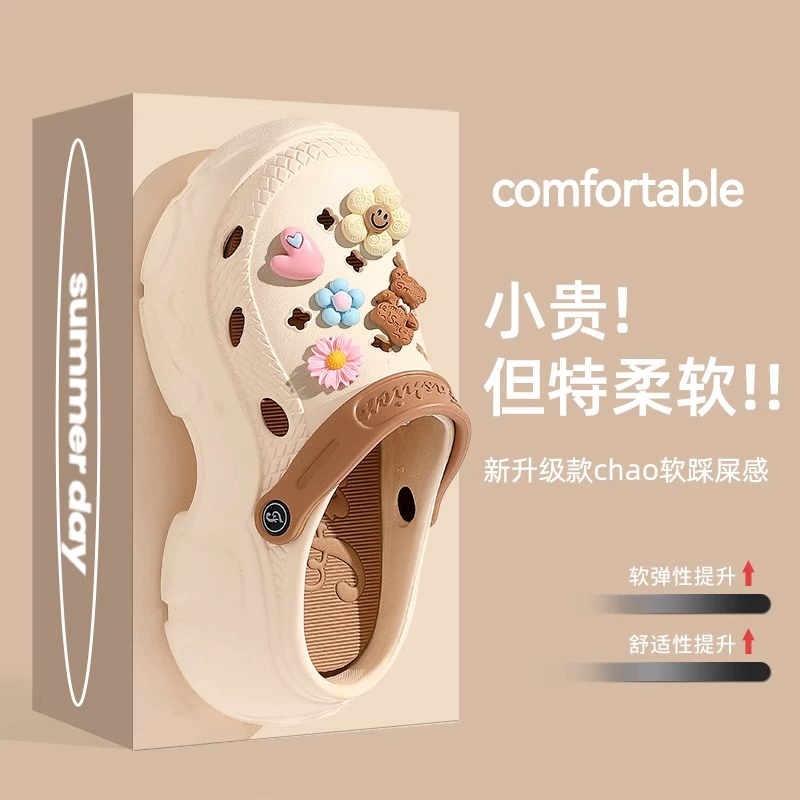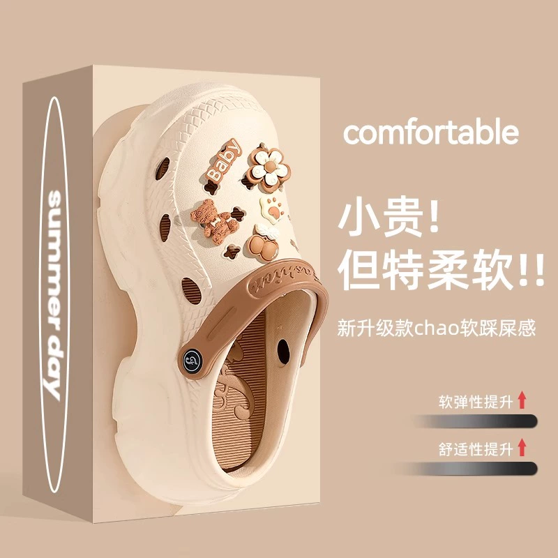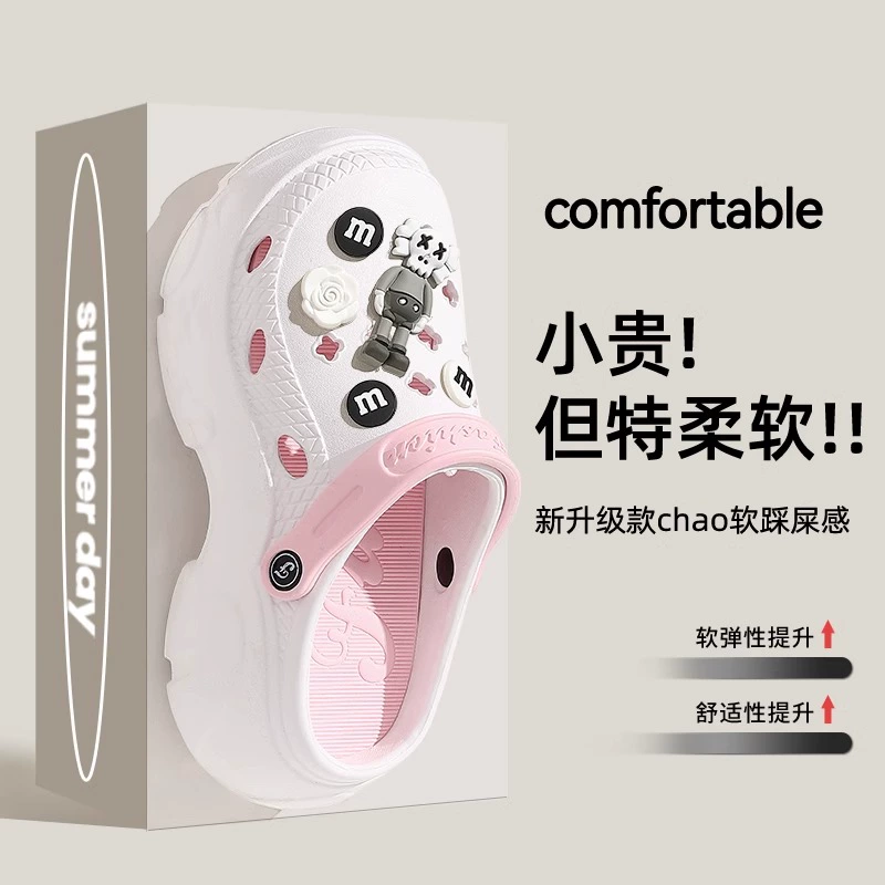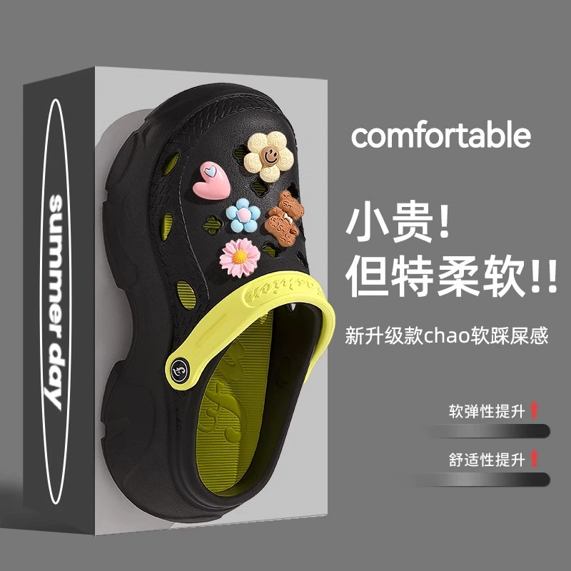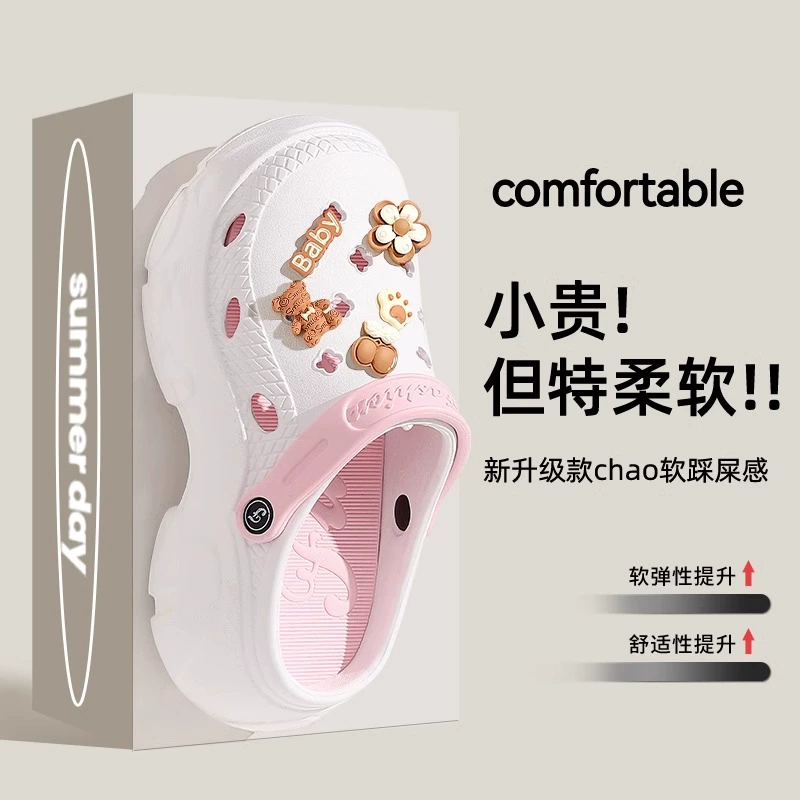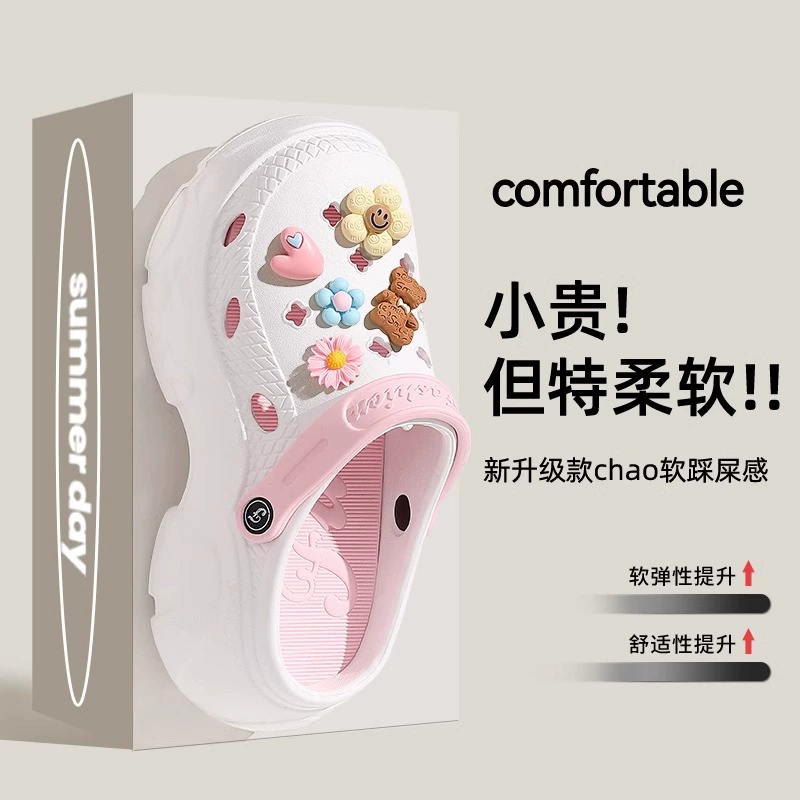 Thick-soled Croc Shoes Women’s Summer 2024 New Outerwear Increased Baotou Anti-Slip Sandals Nurse Women’s Sandals