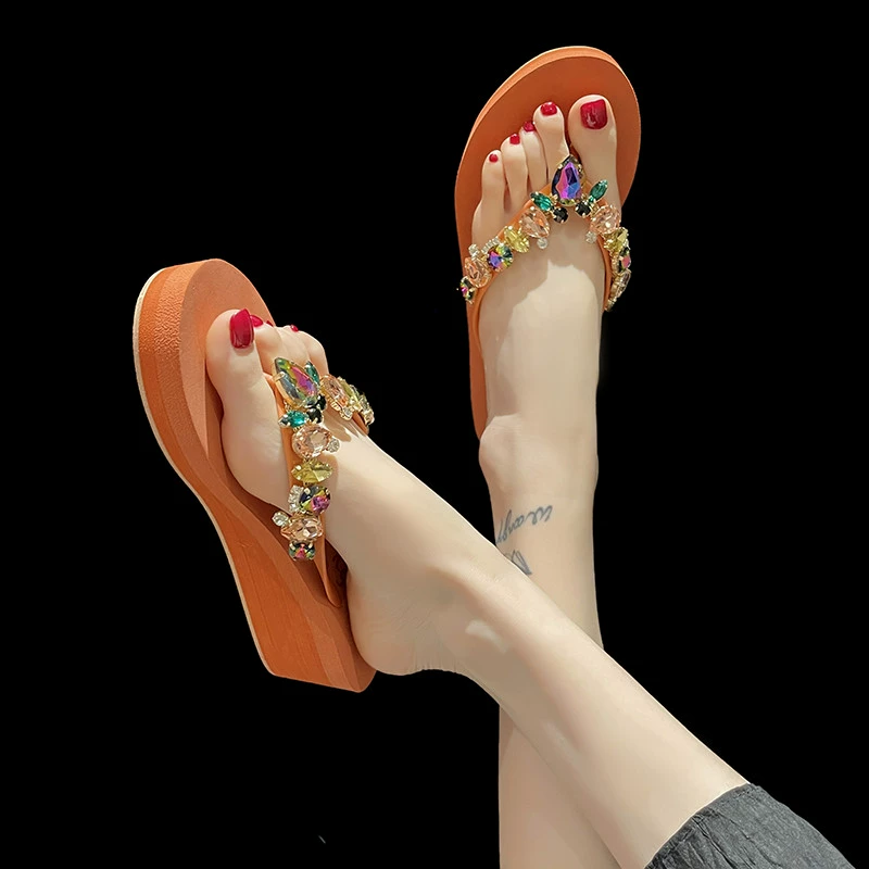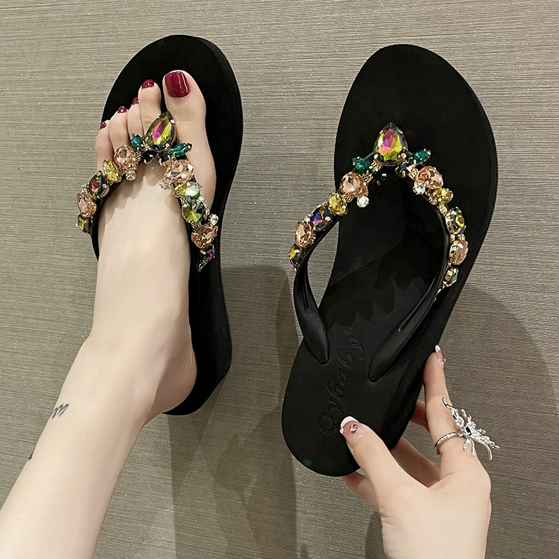 | nameOriginal | Thick-soled fashionable rhinestone flip-flops with non-slip wedge heels |