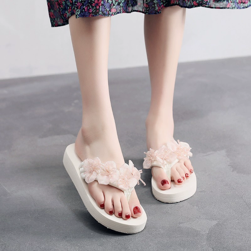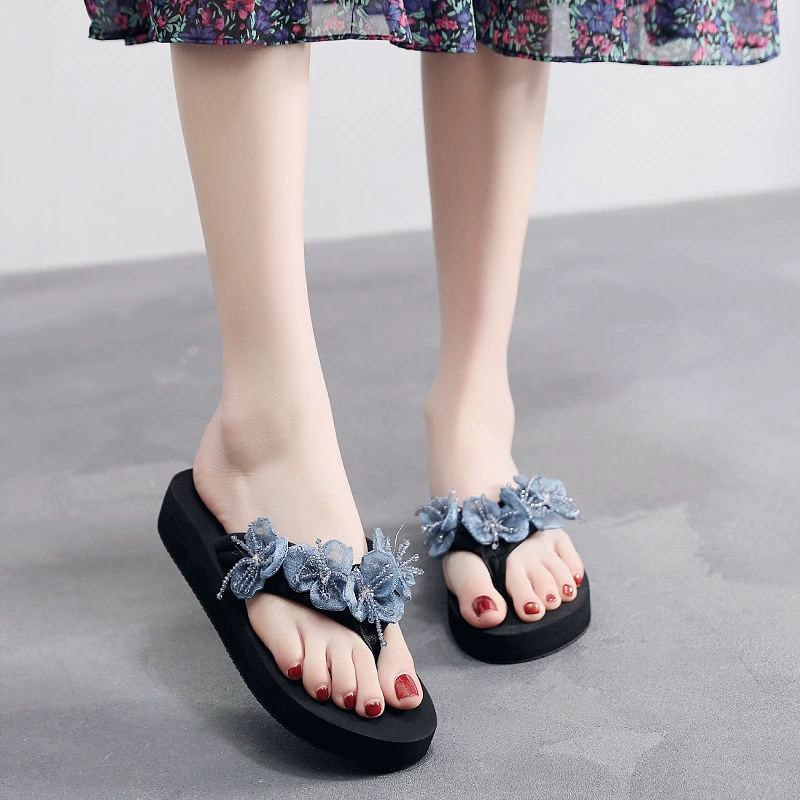 | nameOriginal | Thick-soled fashionable wedge-heeled beach flower flip-flops |