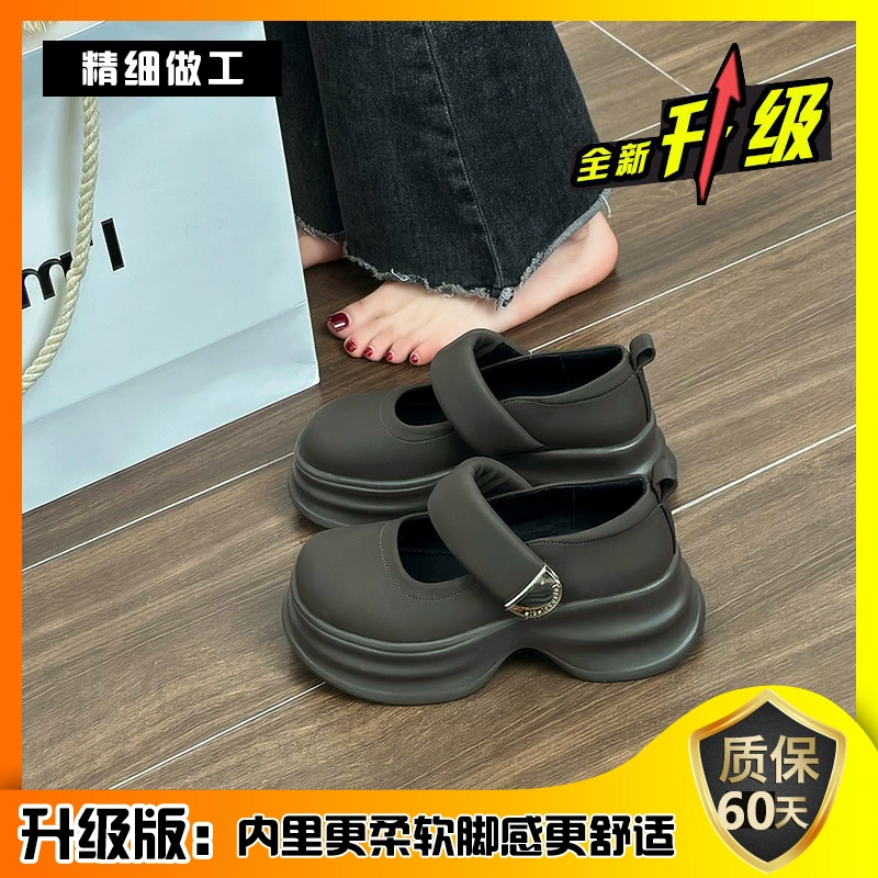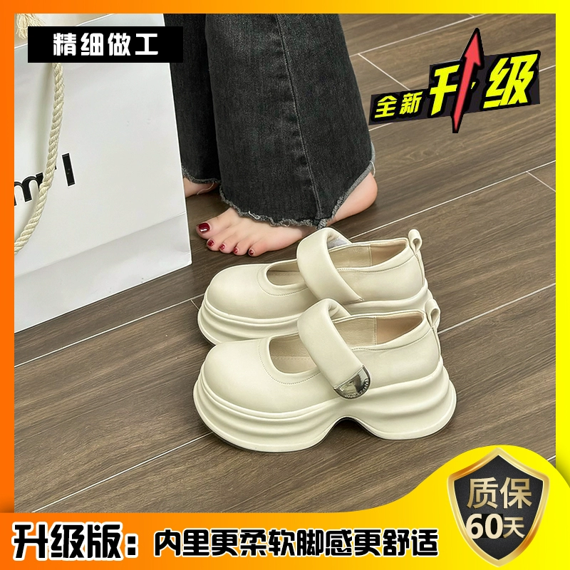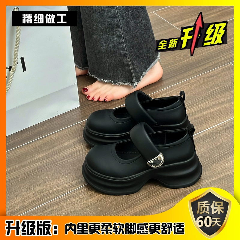 Thick-soled French spring height-increasing large-toe Mary Jane shoes
