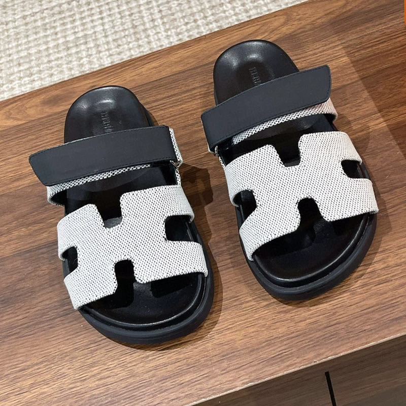 Thick-soled H slippers, fashionable Velcro beach strap