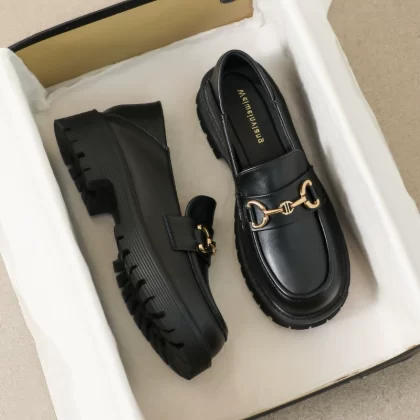 Thick-soled women’s high-end British large-size leather shoes