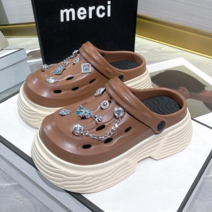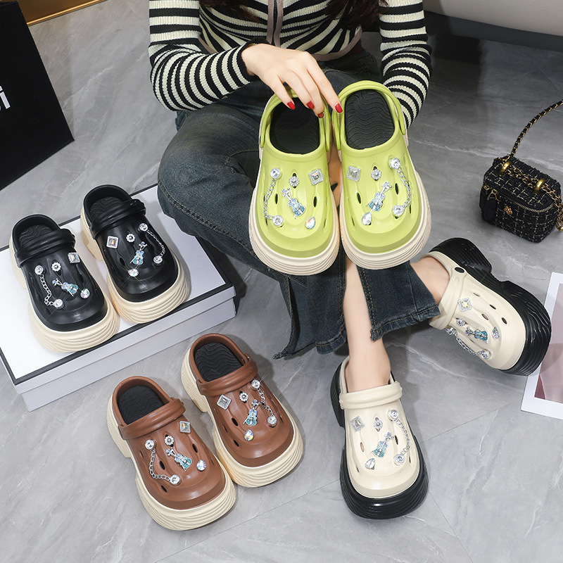 Thick-soled hole shoes women’s summer outdoor wear heightening 2024 new EVA beach non-slip sandals women’s wholesale