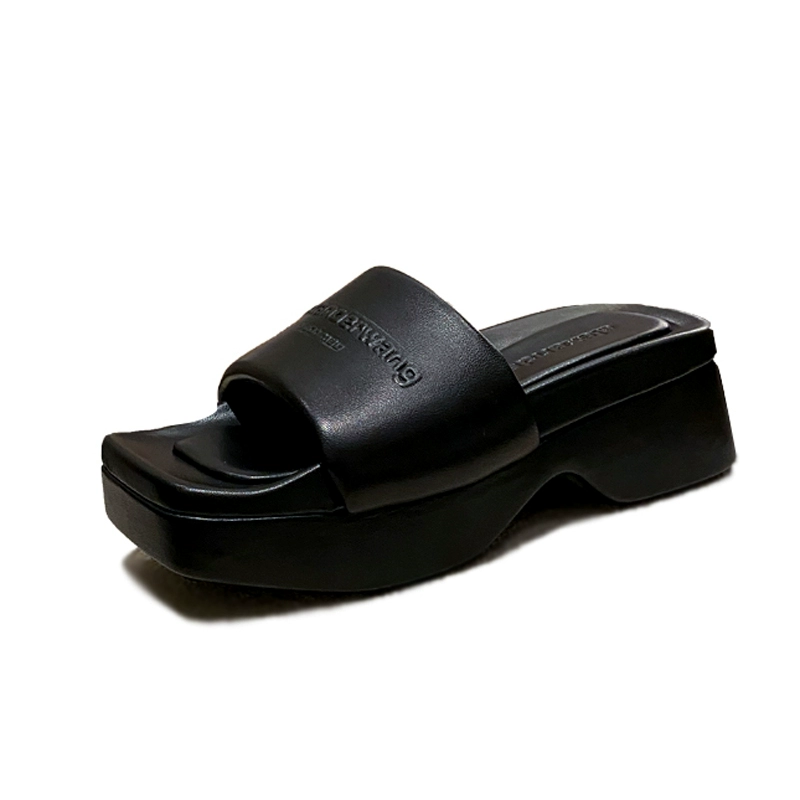 | nameOriginal | Thick-soled leather platform denim square-toe sandals |