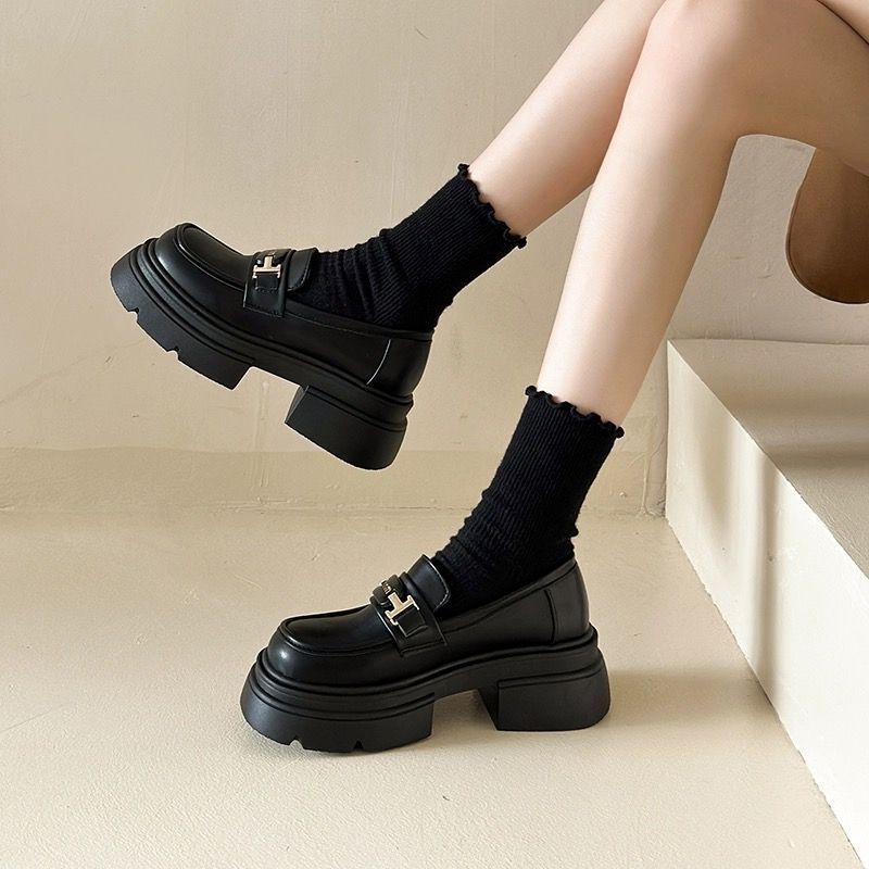 | nameOriginal | Thick-soled loafers women's 2024 spring new one-step British-style black leather shoes explosions Mary Jane shoes |