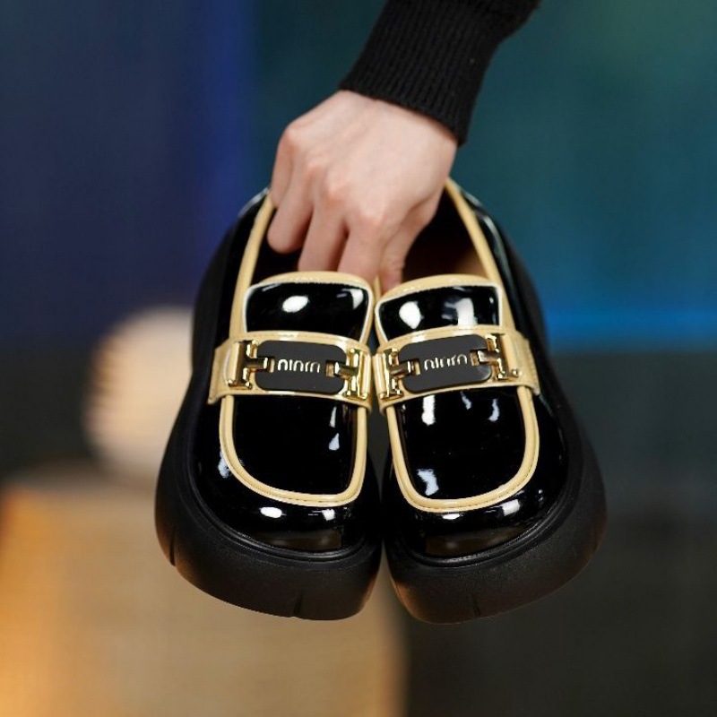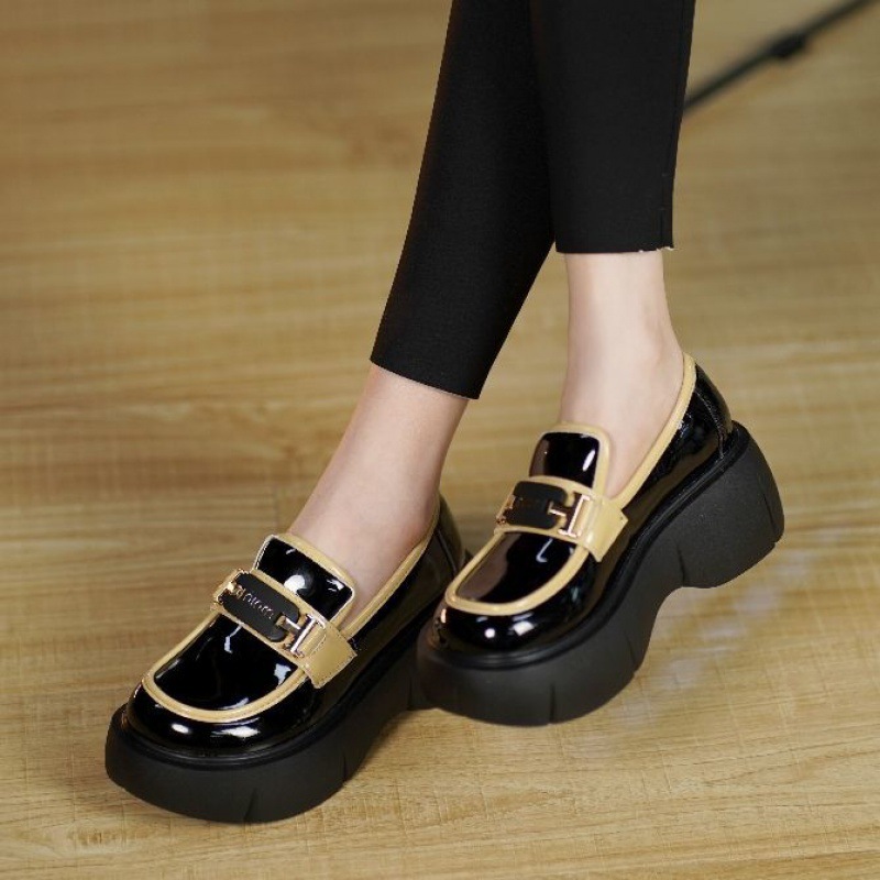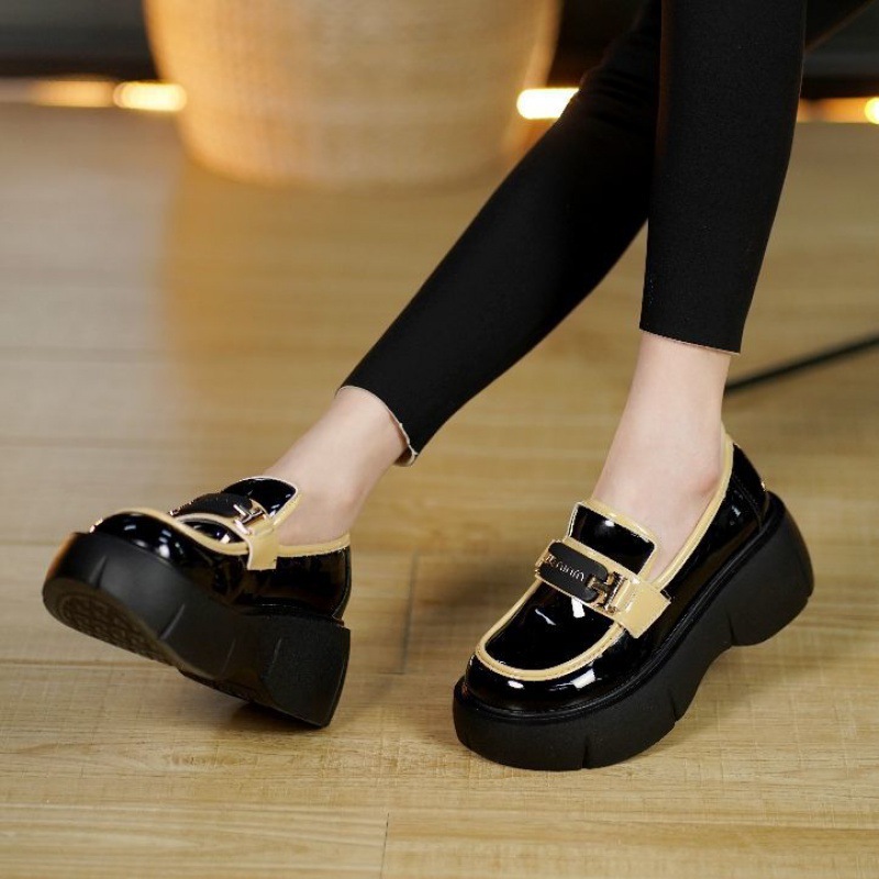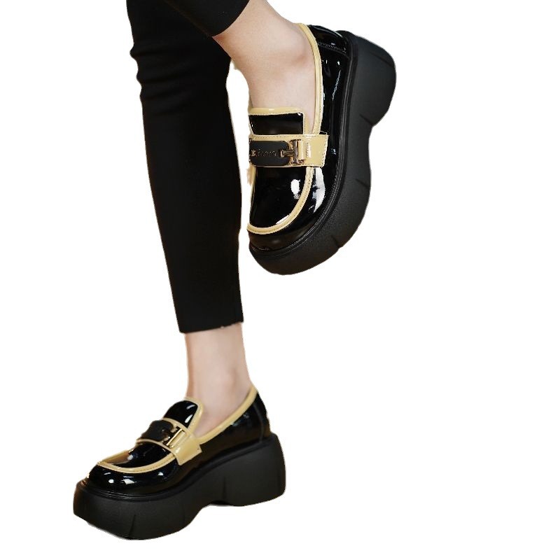 | nameOriginal | Thick-soled Patent Leather Loafers 2024 Spring New Slip-on Round-toed Single-layer Shoes Women's Elevated British-style Black Small Leather Shoes |