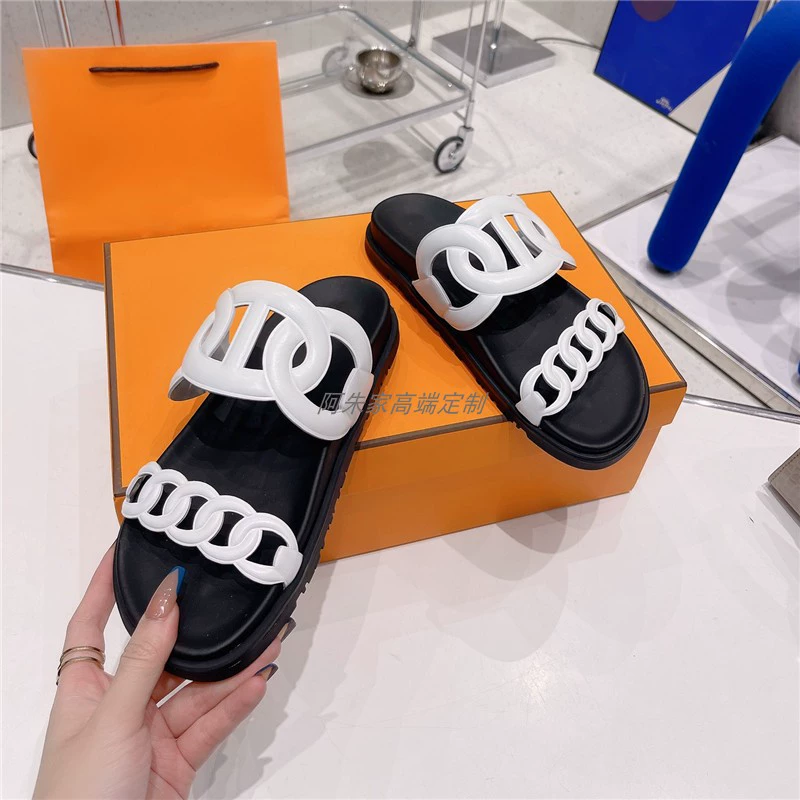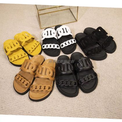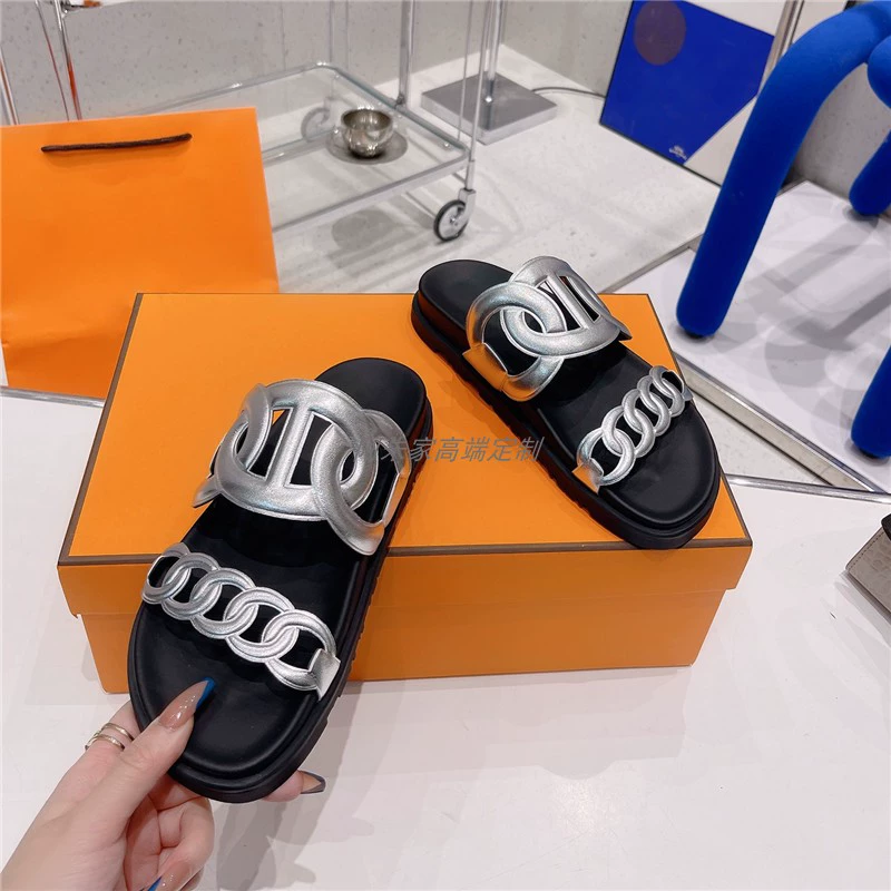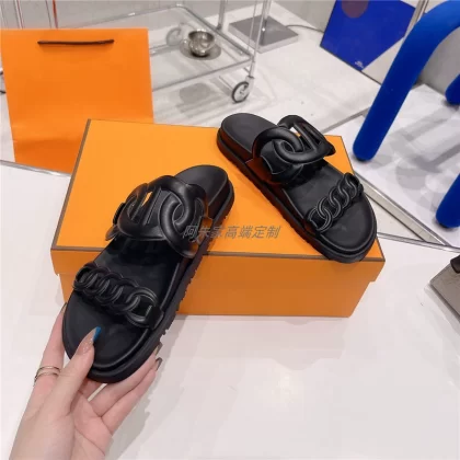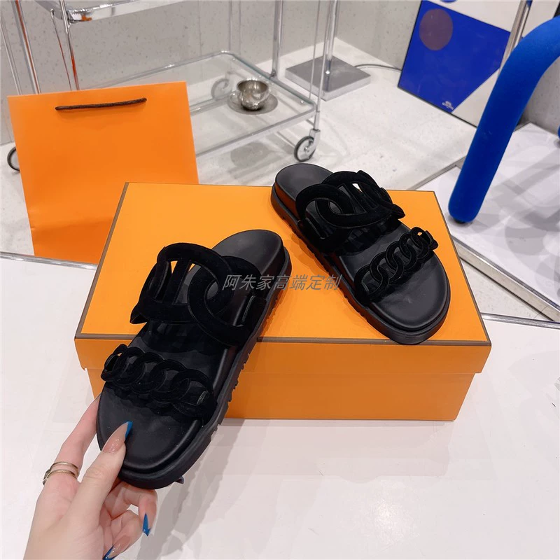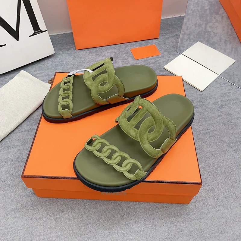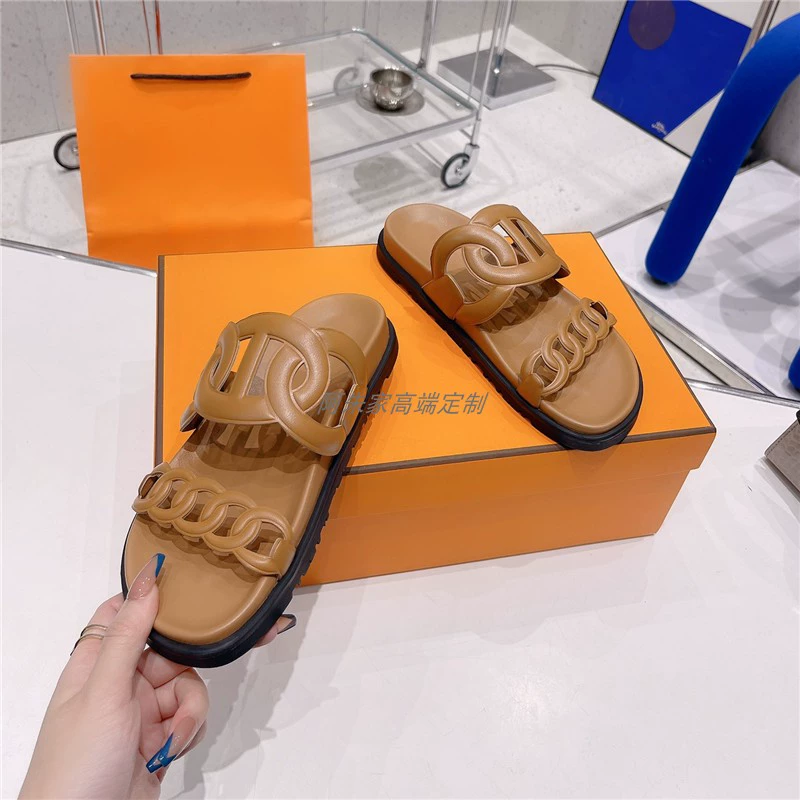Thick -bottom pig nose, color leather leather wild sand slippers