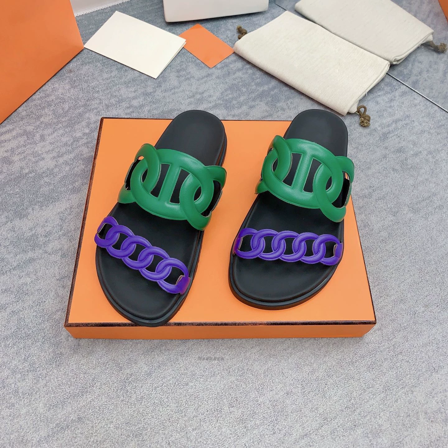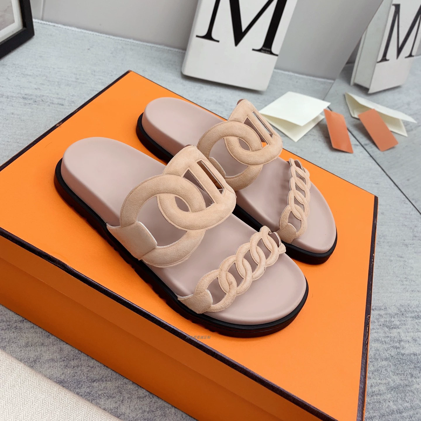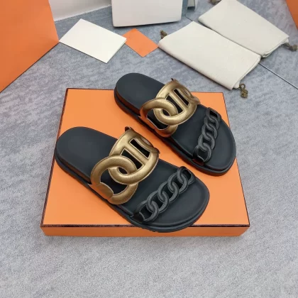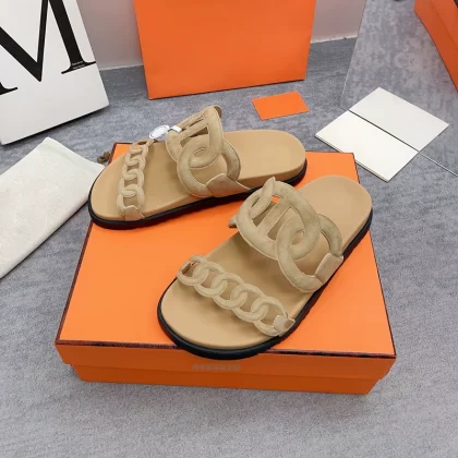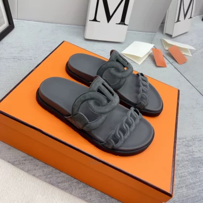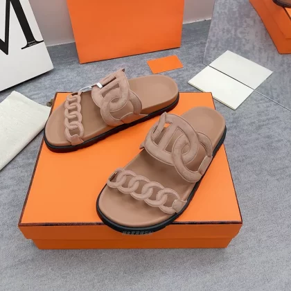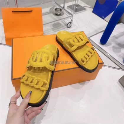 Thick -bottom pig nose, color leather leather wild sand slippers