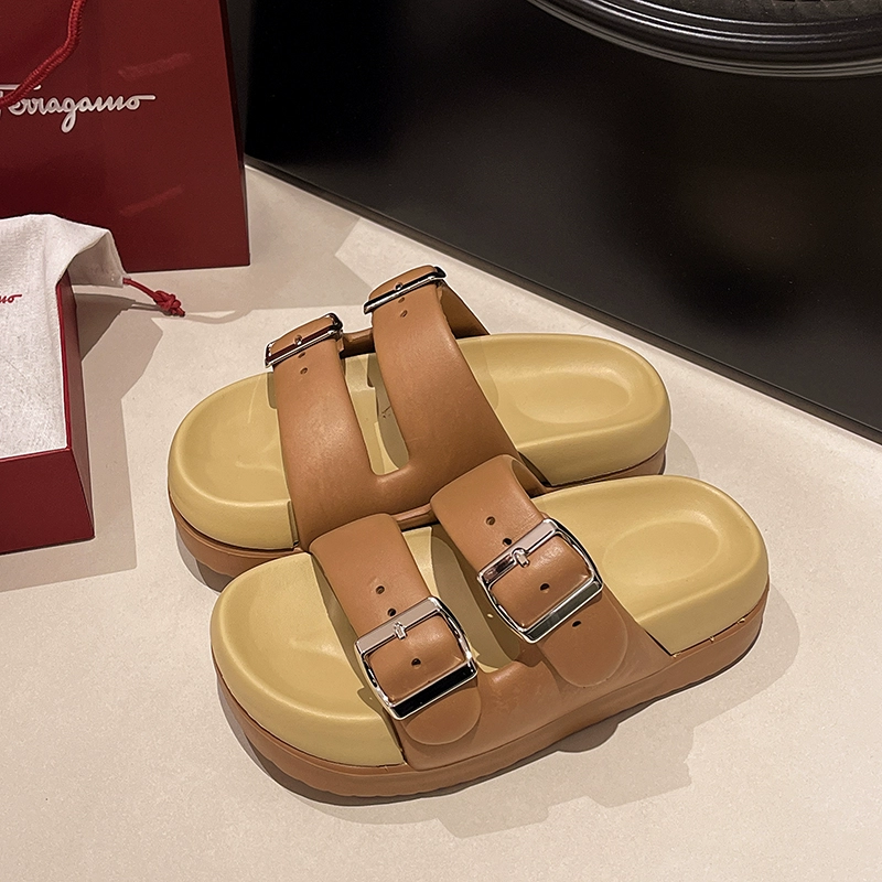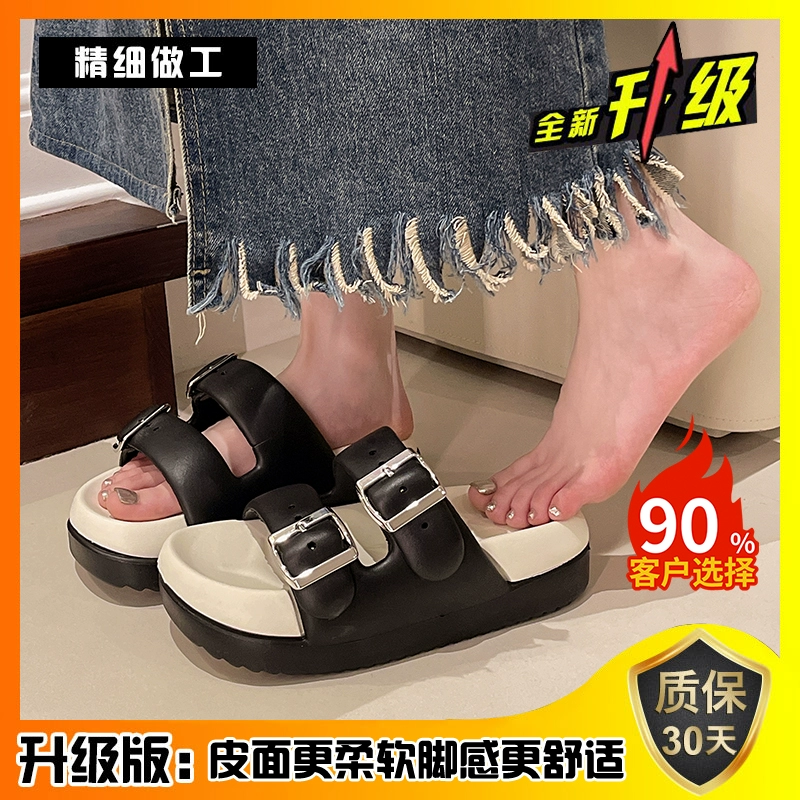 | nameOriginal | Thick-soled platform slippers for women for summer outerwear 2024 new high-end niche buckle non-slip beach sandals |