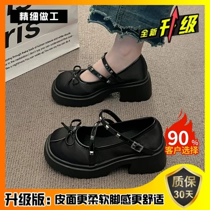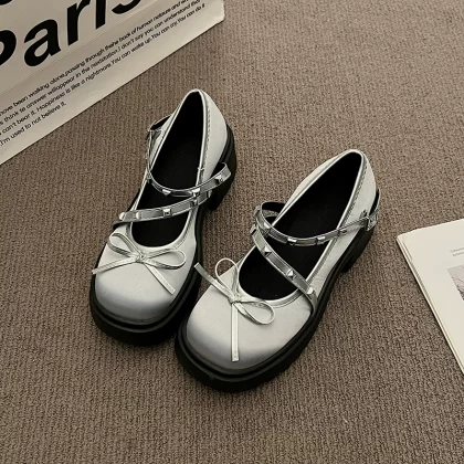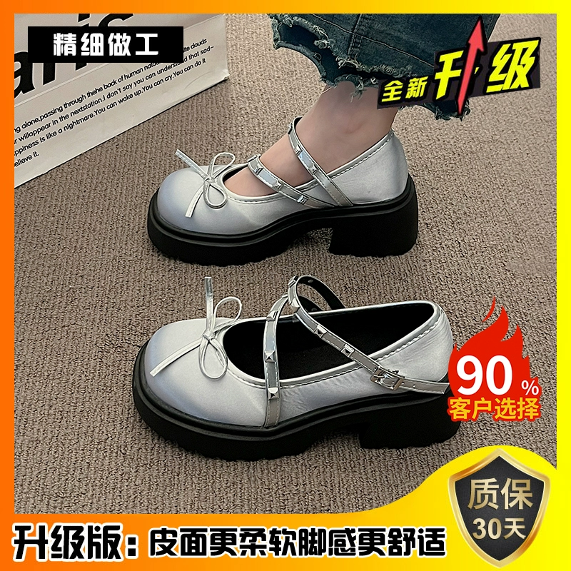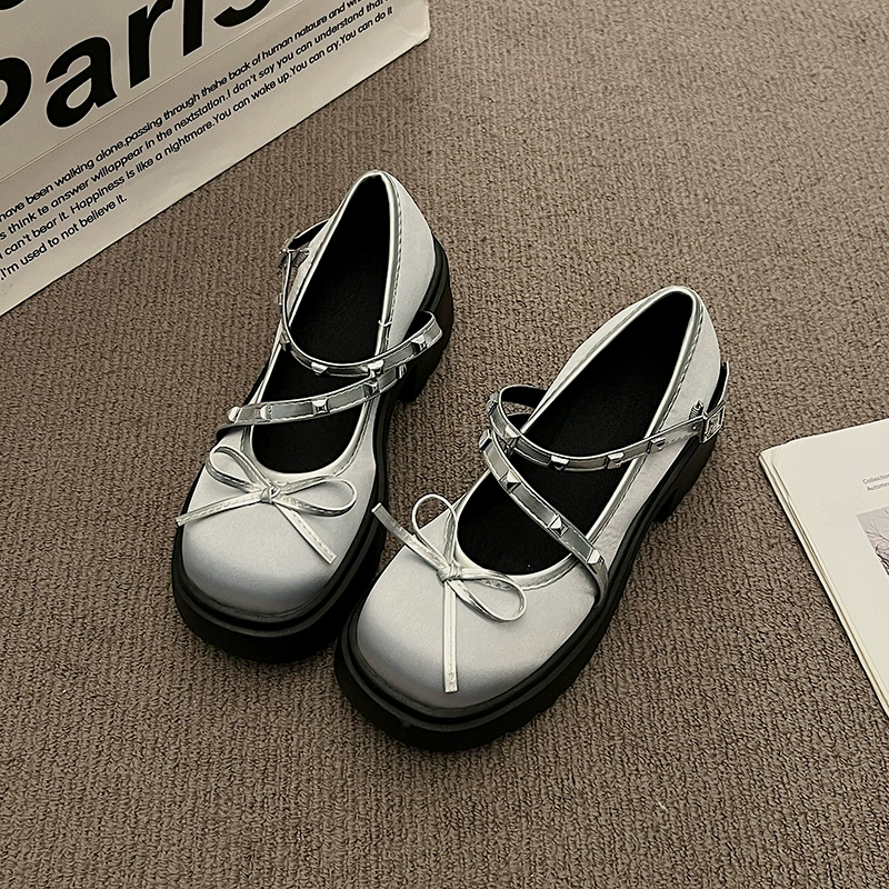 | nameOriginal | Thick-soled silver Mary Jane shoes with skirt rivets and thick heels |