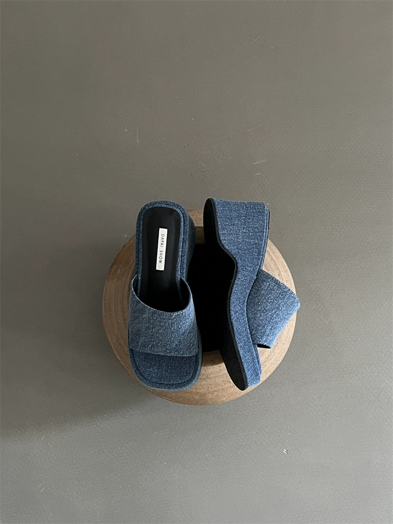 | nameOriginal | Thick-soled slimming and heightening denim sandals for small people |