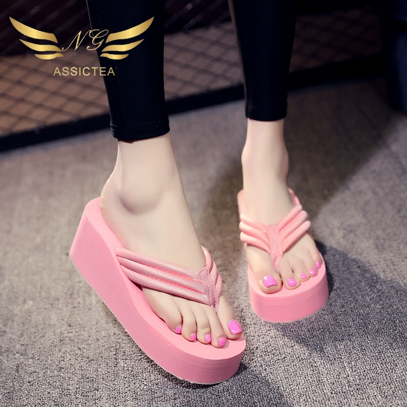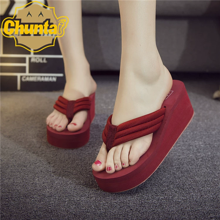 Thick-soled women's non-slip wedge beach shoes flip-flops