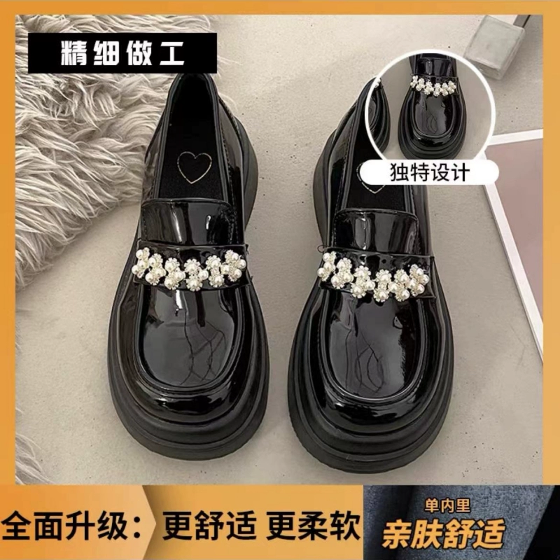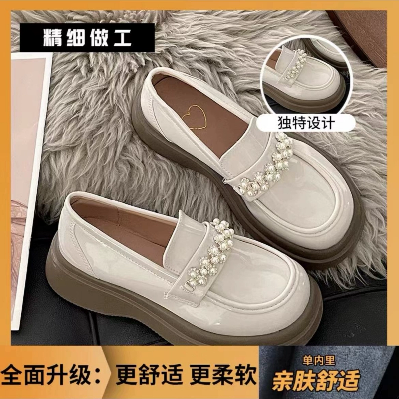 Thick-soled women’s shoes 2024 new French retro British style loafers women’s versatile shoes Mary Jane shoes small leather shoes