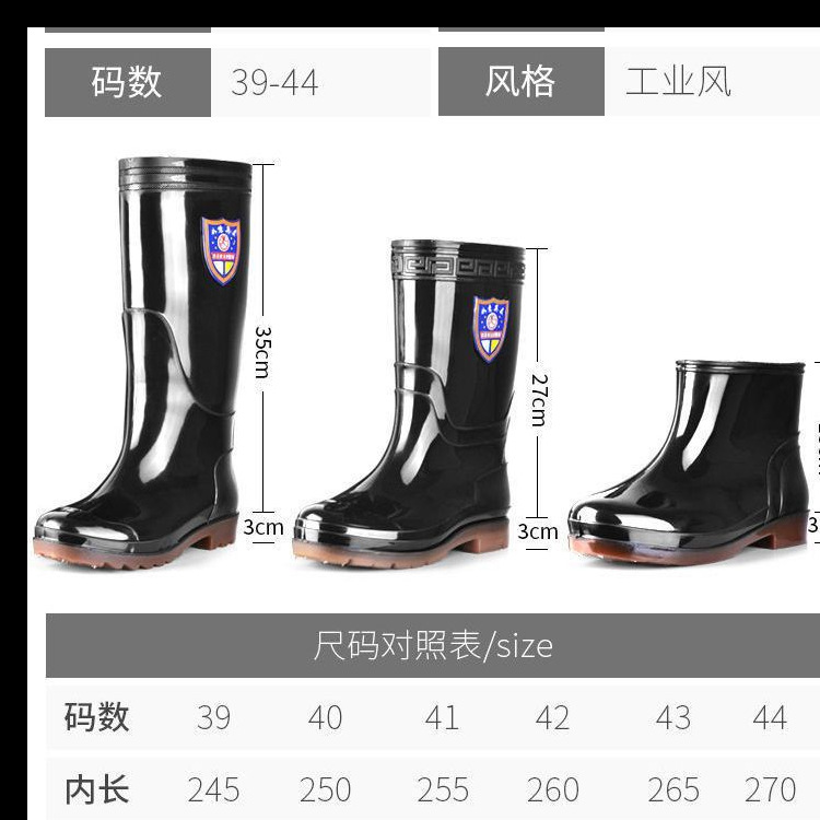 | nameOriginal | Thick tendon bottom rain boots labor protection men's non-slip wear-resistant fleece-lined water boots work Rubber High School short waterproof shoes men |