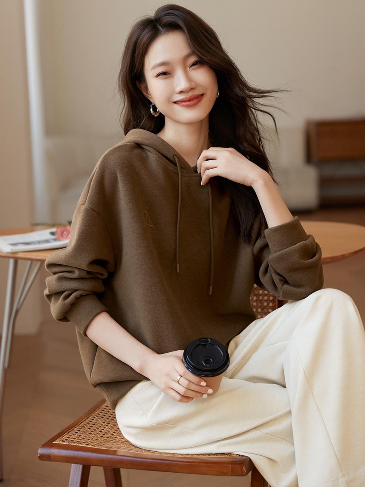 | nameOriginal | Thick warm hooded sweater 2023 autumn and winter New simple casual letter basic loose all-match sweater for women |