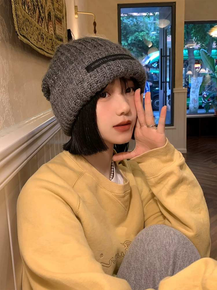 | nameOriginal | Thick woolen hat for women in autumn and winter Japanese style large head circumference loose knitted hat showing face small cold hat ins trendy gray hat |