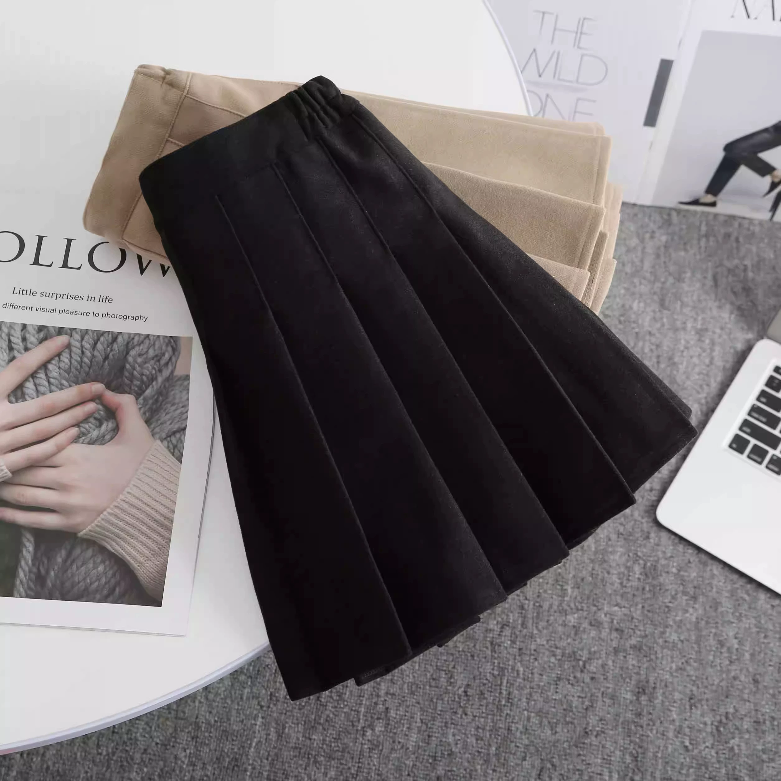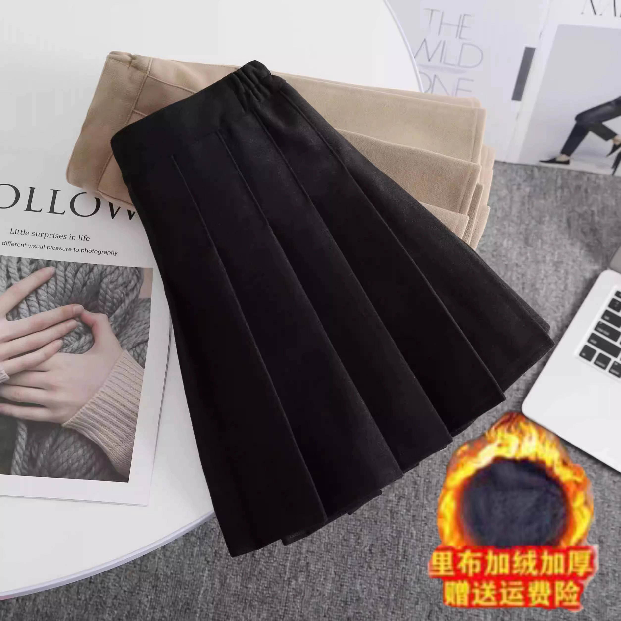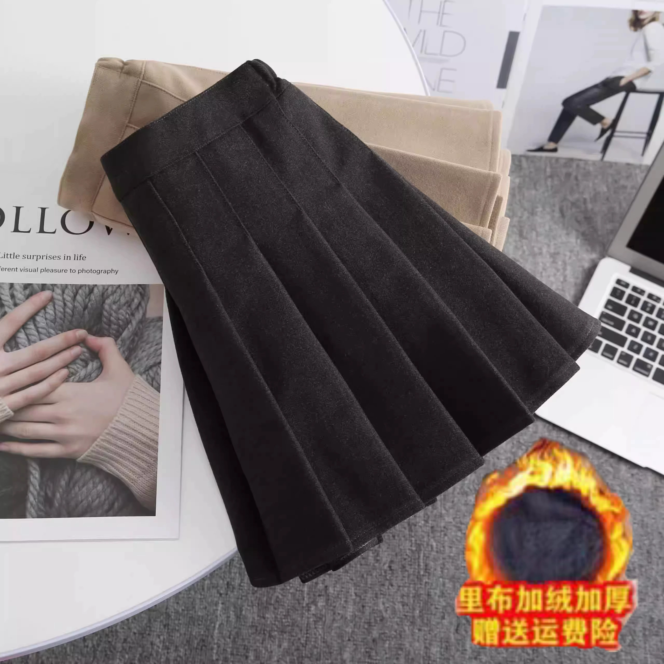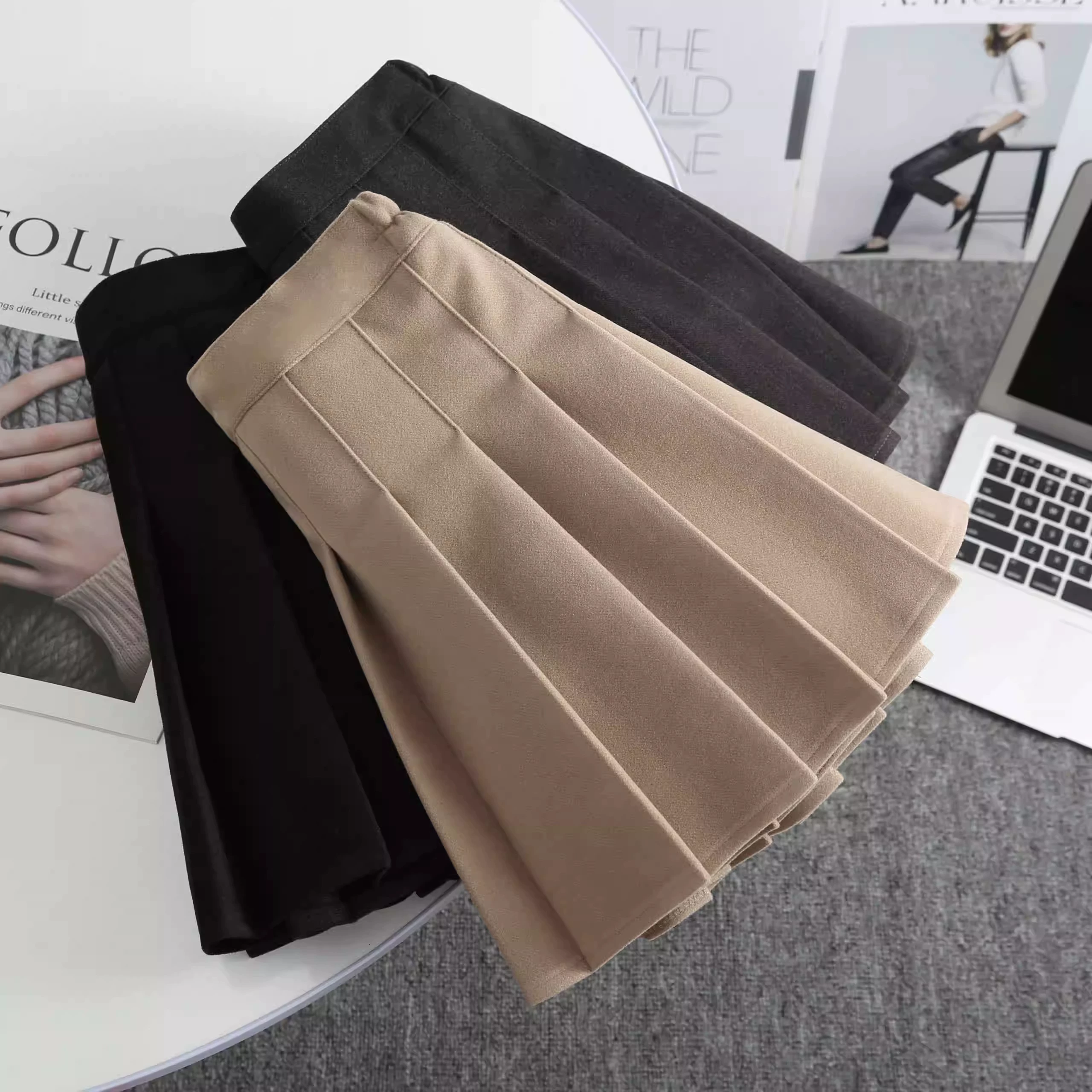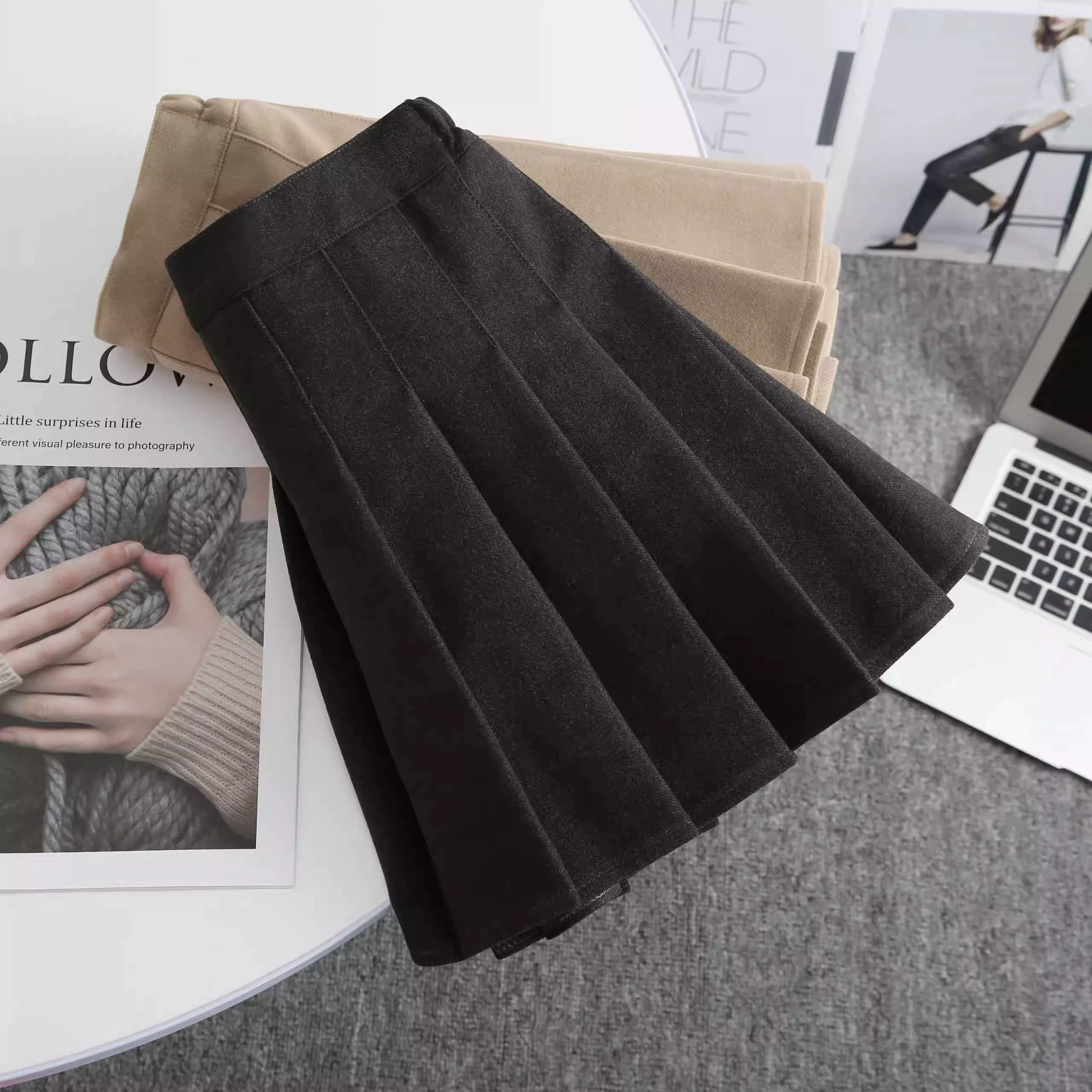 | nameOriginal | Thick woolen pleated elastic waist college style skirt |