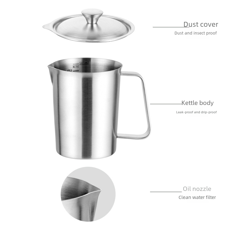 Thickened 304 stainless steel measuring cup with scale milk tea coffee measuring cup kitchen baking measuring cup measuring spoon 0.5-2L