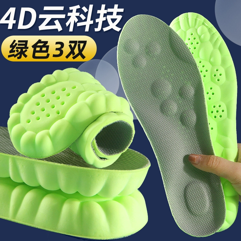 Thickened and upgraded 4D sports shock-absorbing insoles for men and women, super-soft, sweat-absorbent, anti-odor, long-standing standing arch support