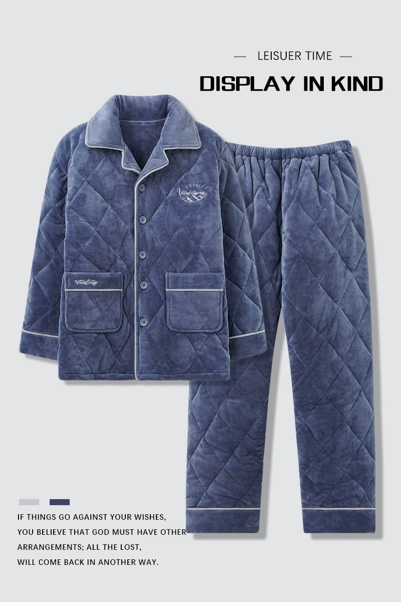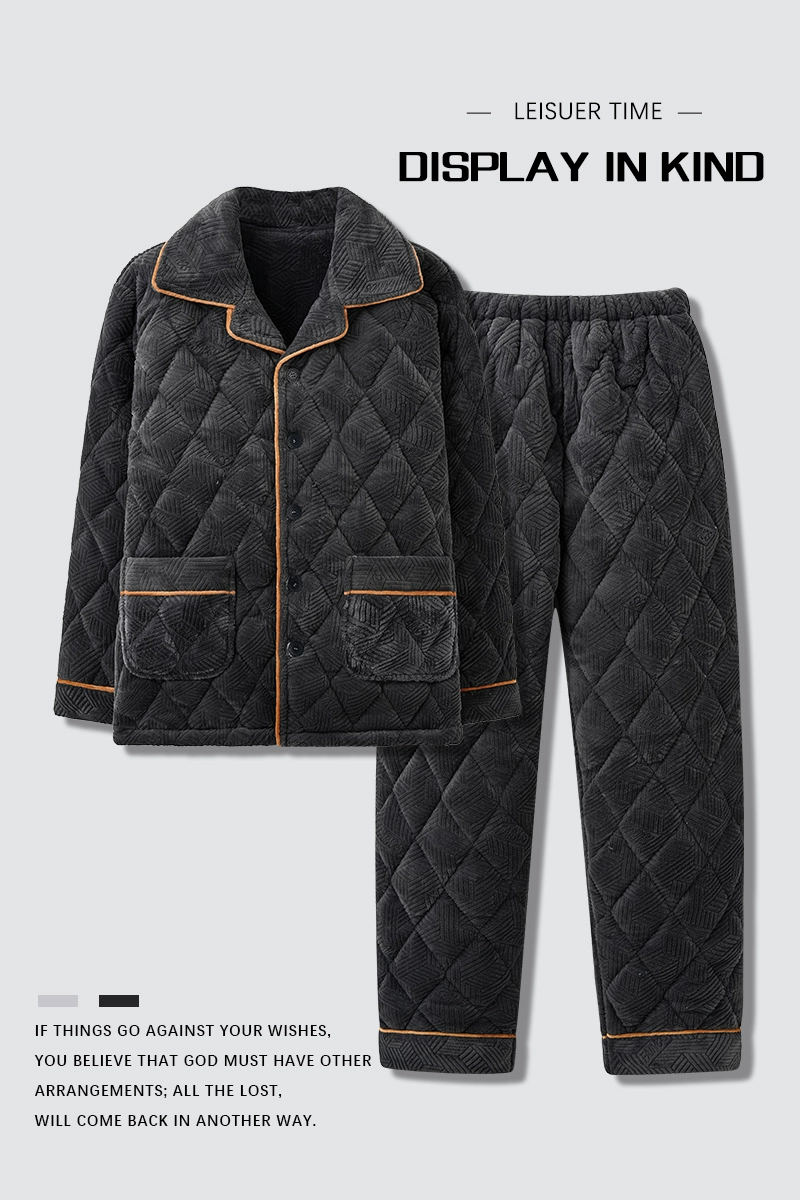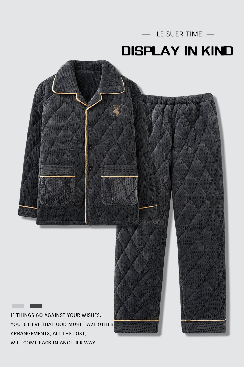 | nameOriginal | Thickened and velvet three-layer quilted coral velvet pajamas for men, winter warm and cold long-sleeved casual home wear set |