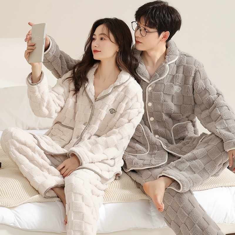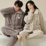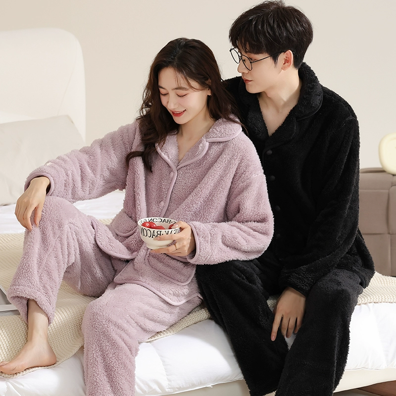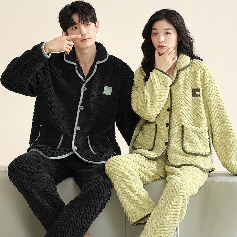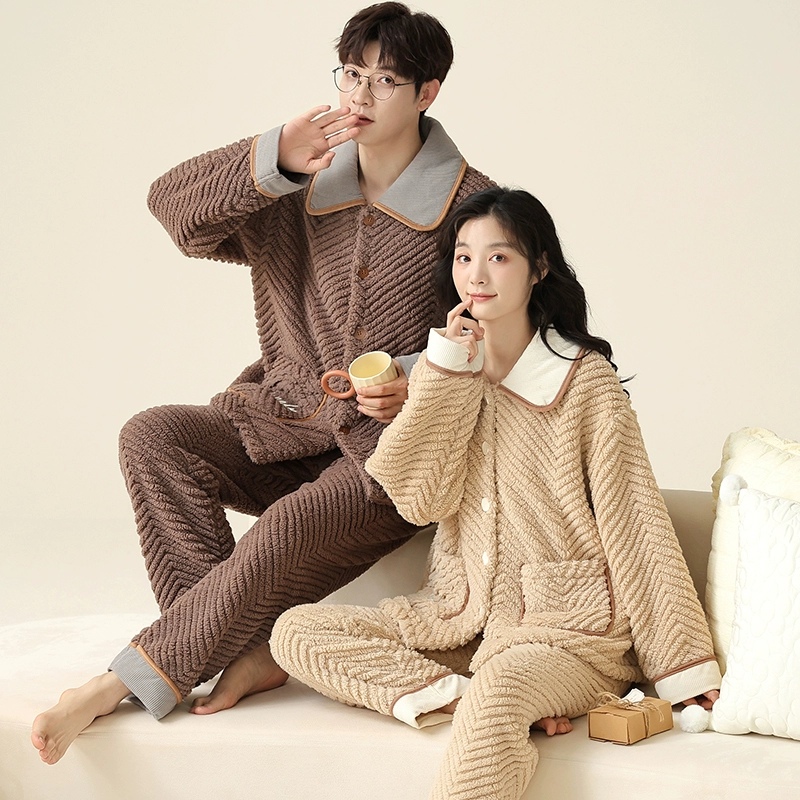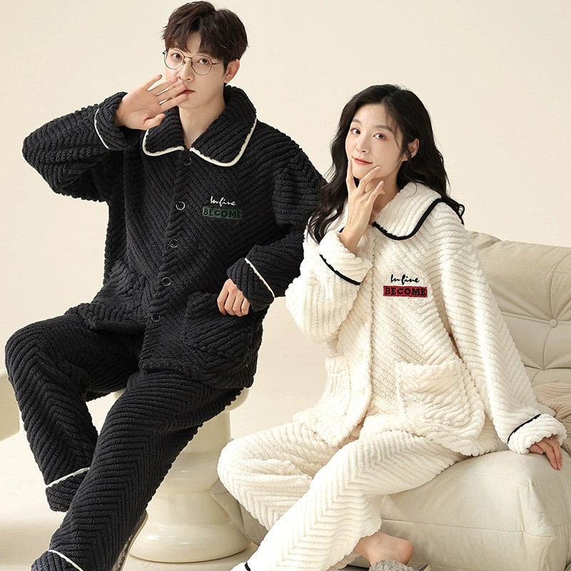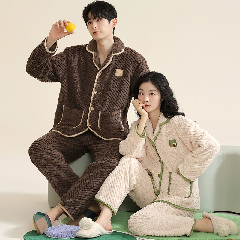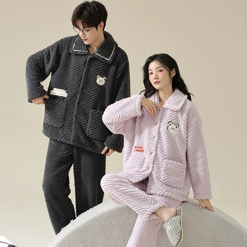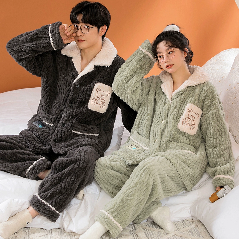 Thickened autumn and winter warm flannel couple pajamas