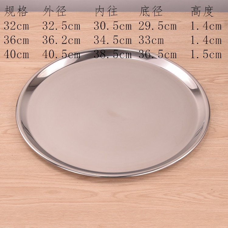 | nameOriginal | Thickened Stainless Steel Plate Round Large Disc Flat Bottom Shallow Plate Service Tray Fish Head Plate Hotel Restaurant Hotel |