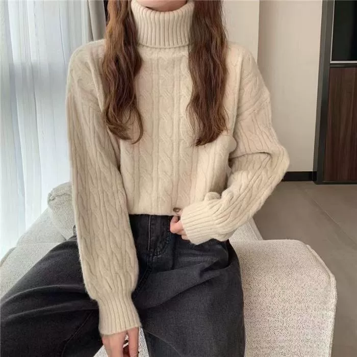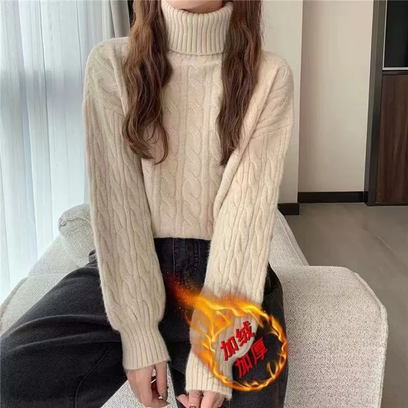 | nameOriginal | Thickened twist winter pullover lazy style turtleneck sweater |