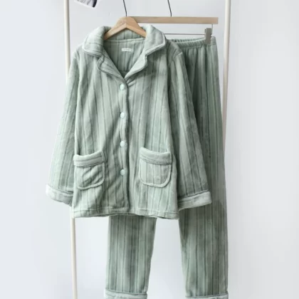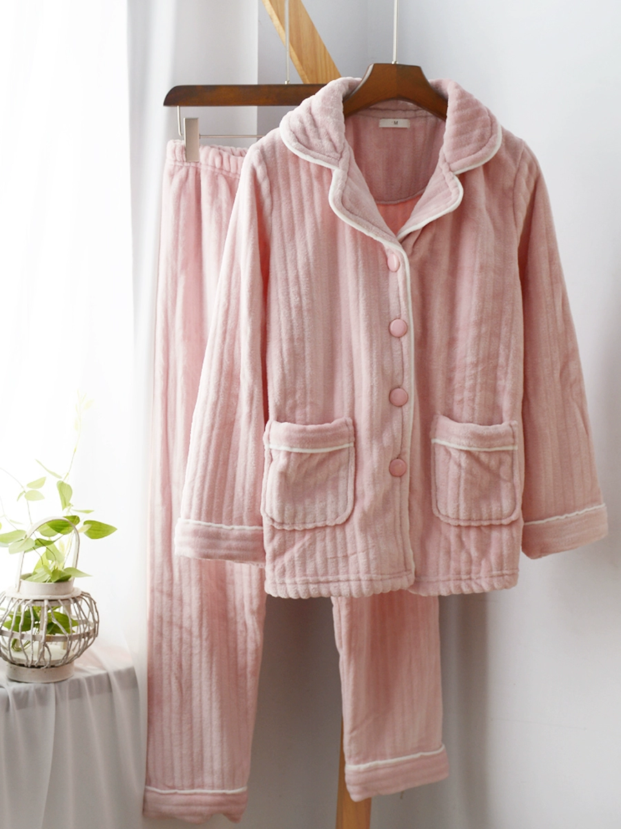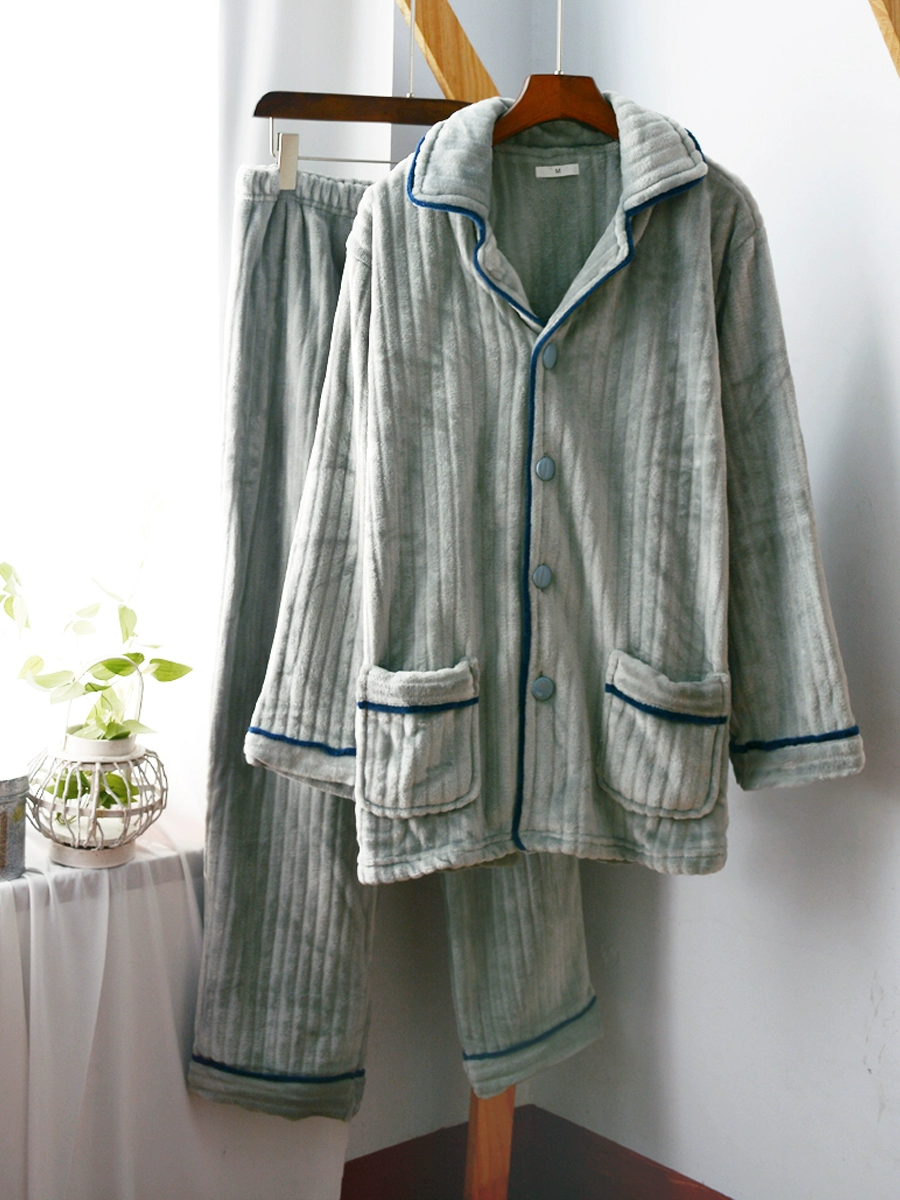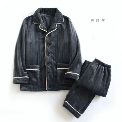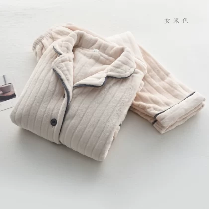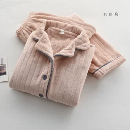 | nameOriginal | Thickened velvet warm pajamas for women and men winter flannel long-sleeved trousers cardigan couple home wear set |