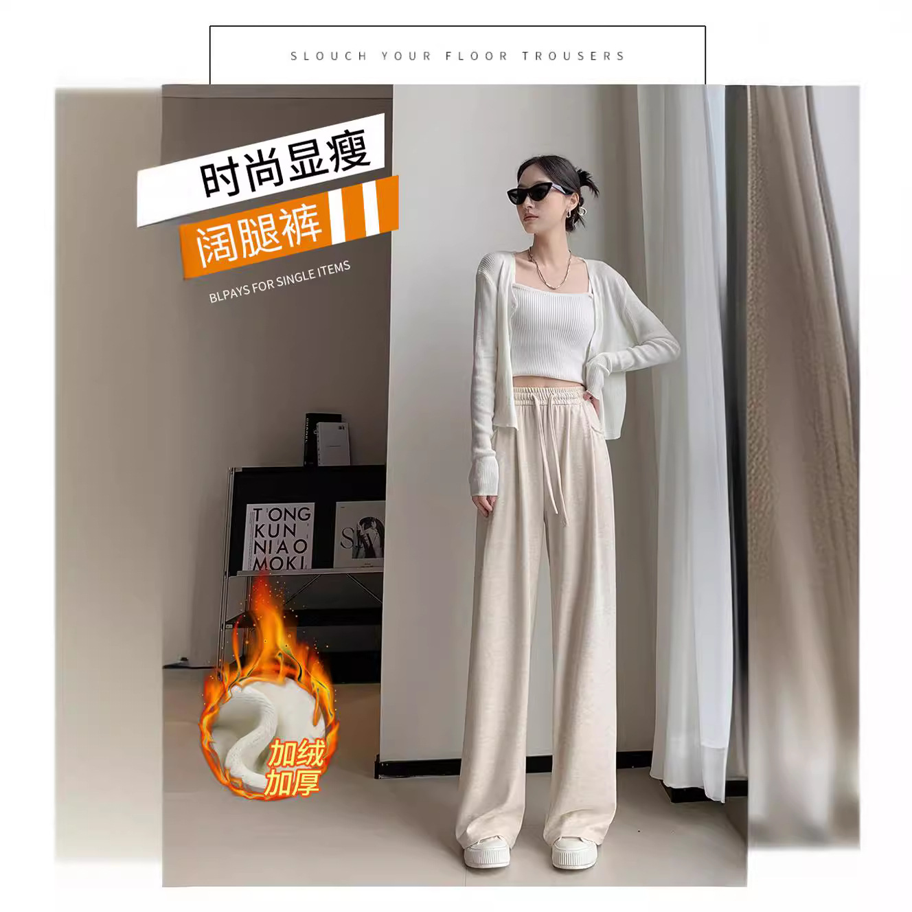 | nameOriginal | Thickened wide-leg pants for women 2023 Autumn New High waist draping loose straight pants casual lazy glutinous rice knitted |
