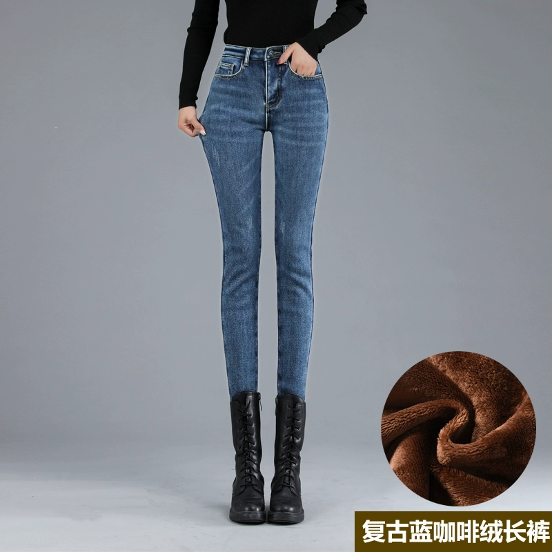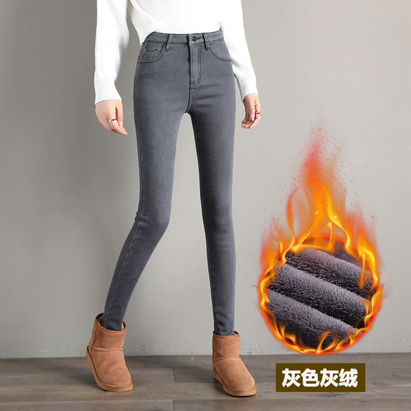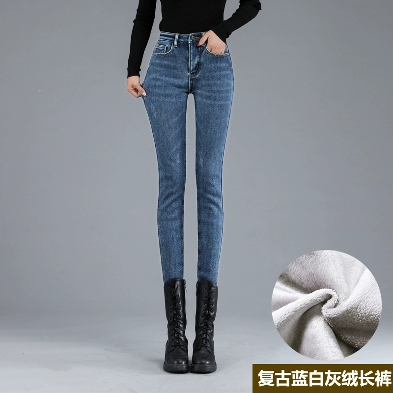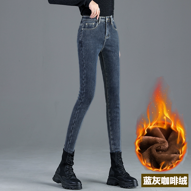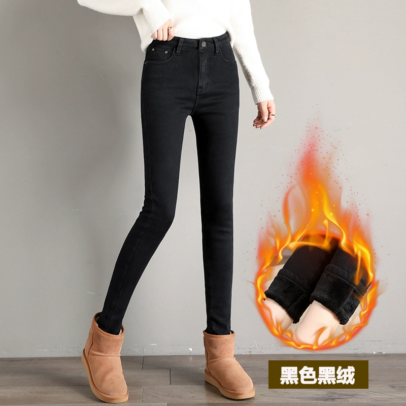 Thickened Winter High Belt Velvet Skinny Outer Jeans