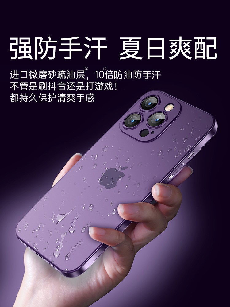 [Thin and light naked feeling] Suitable for Apple 14/13 mobile phone case iPhone15promax ultra-thin new 14pro protective case 13 transparent frosted 12 summer couple men and women purple lens full package