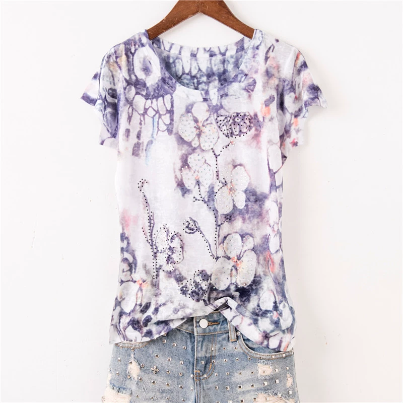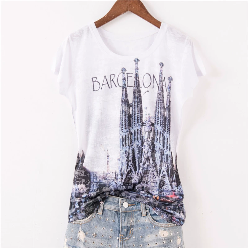 | nameOriginal | Thin architectural print slim fit round neck short sleeve silk cotton |