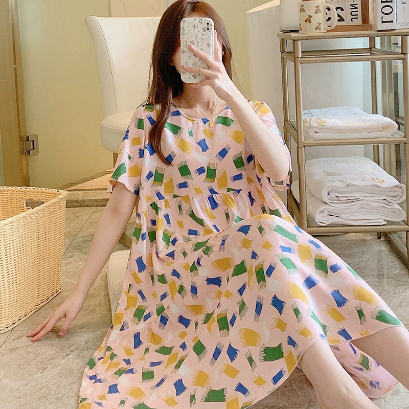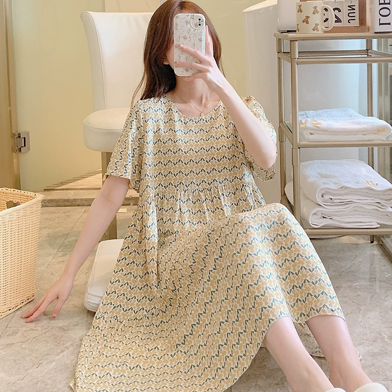 | nameOriginal | Thin artificial cotton silk nightgown, home clothes, summer short-sleeved pajamas, women's loose large size, can be worn outside, student cotton silk skirt |