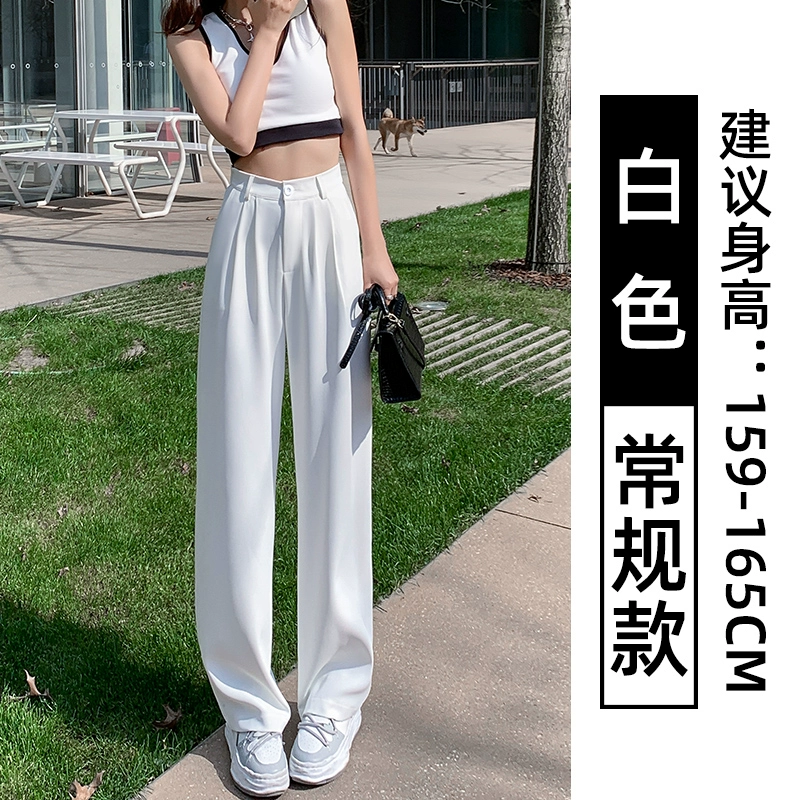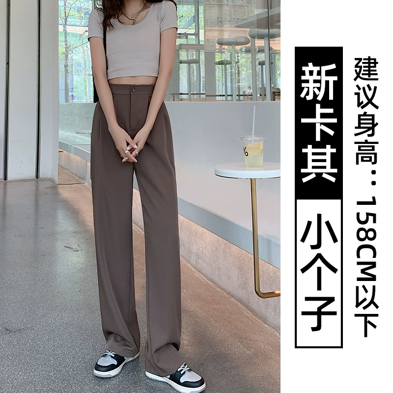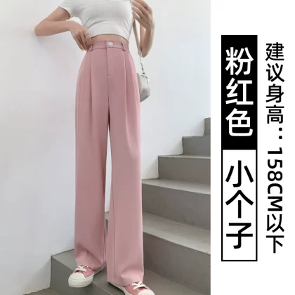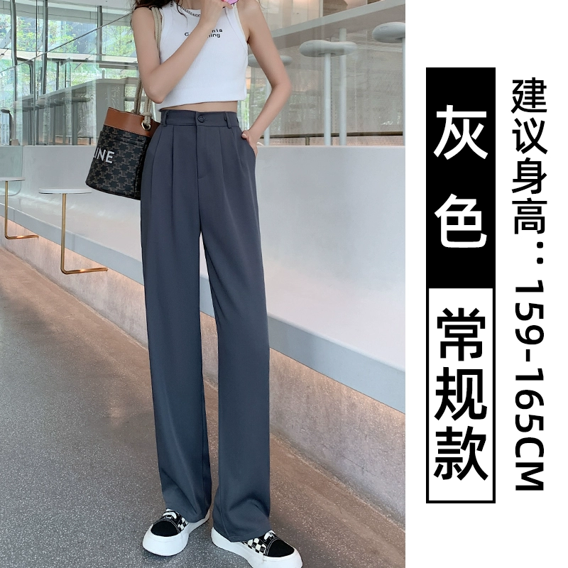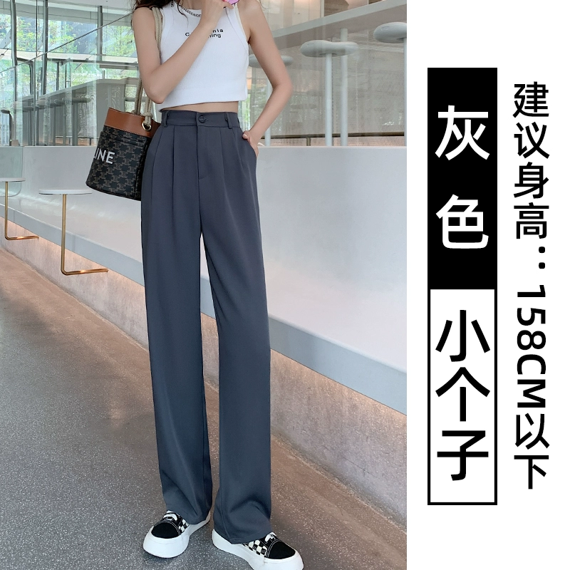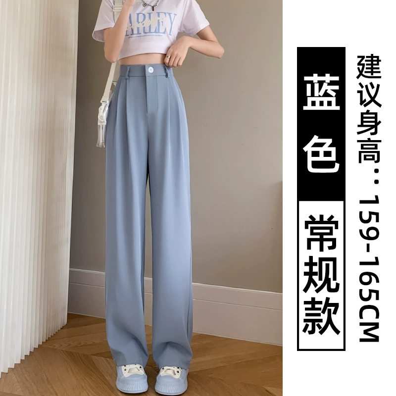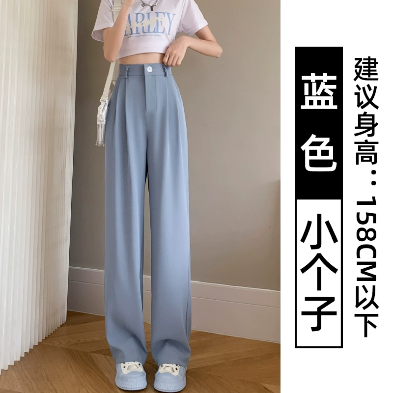 Thin blue ice silk high-waisted wide-leg pants for petites