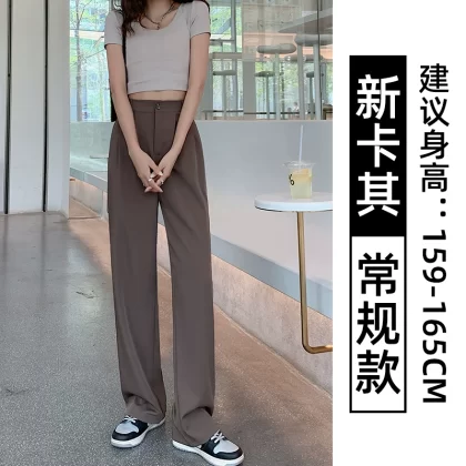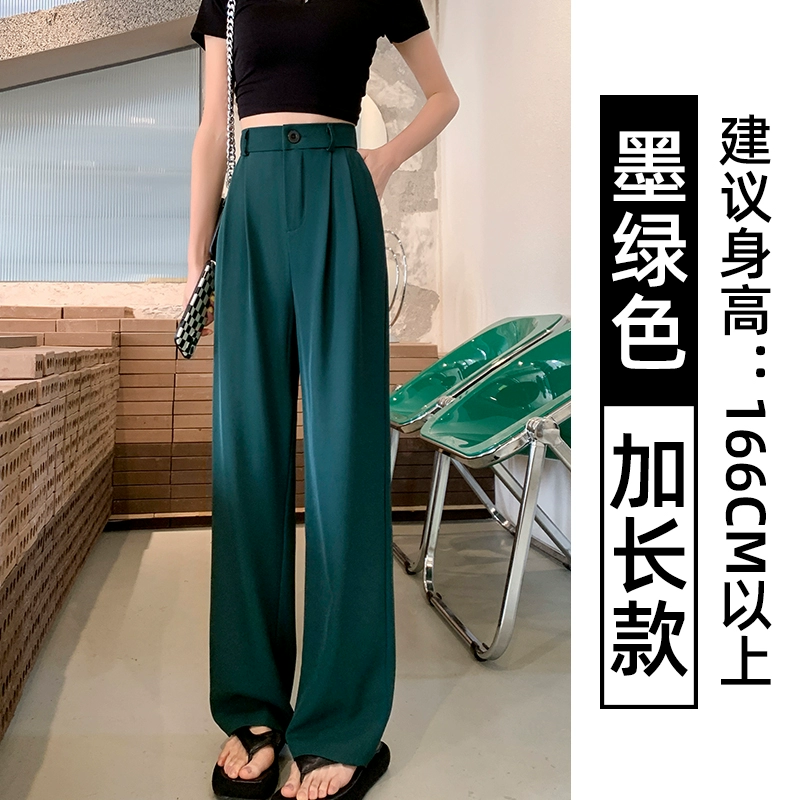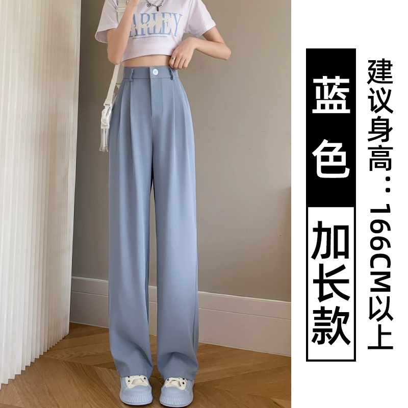 Thin blue ice silk high waist high waist small wide -leg pants