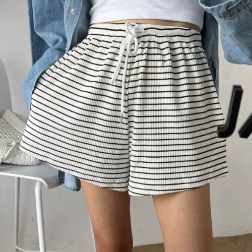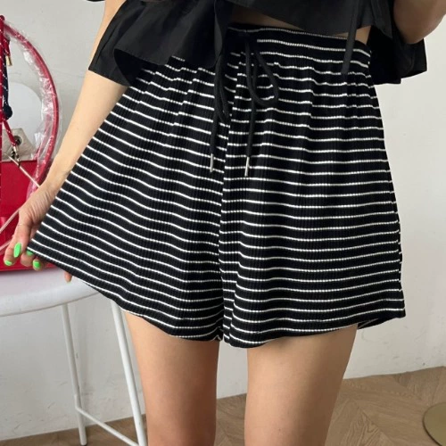 | nameOriginal | Thin casual home elastic waist black and white contrast shorts |