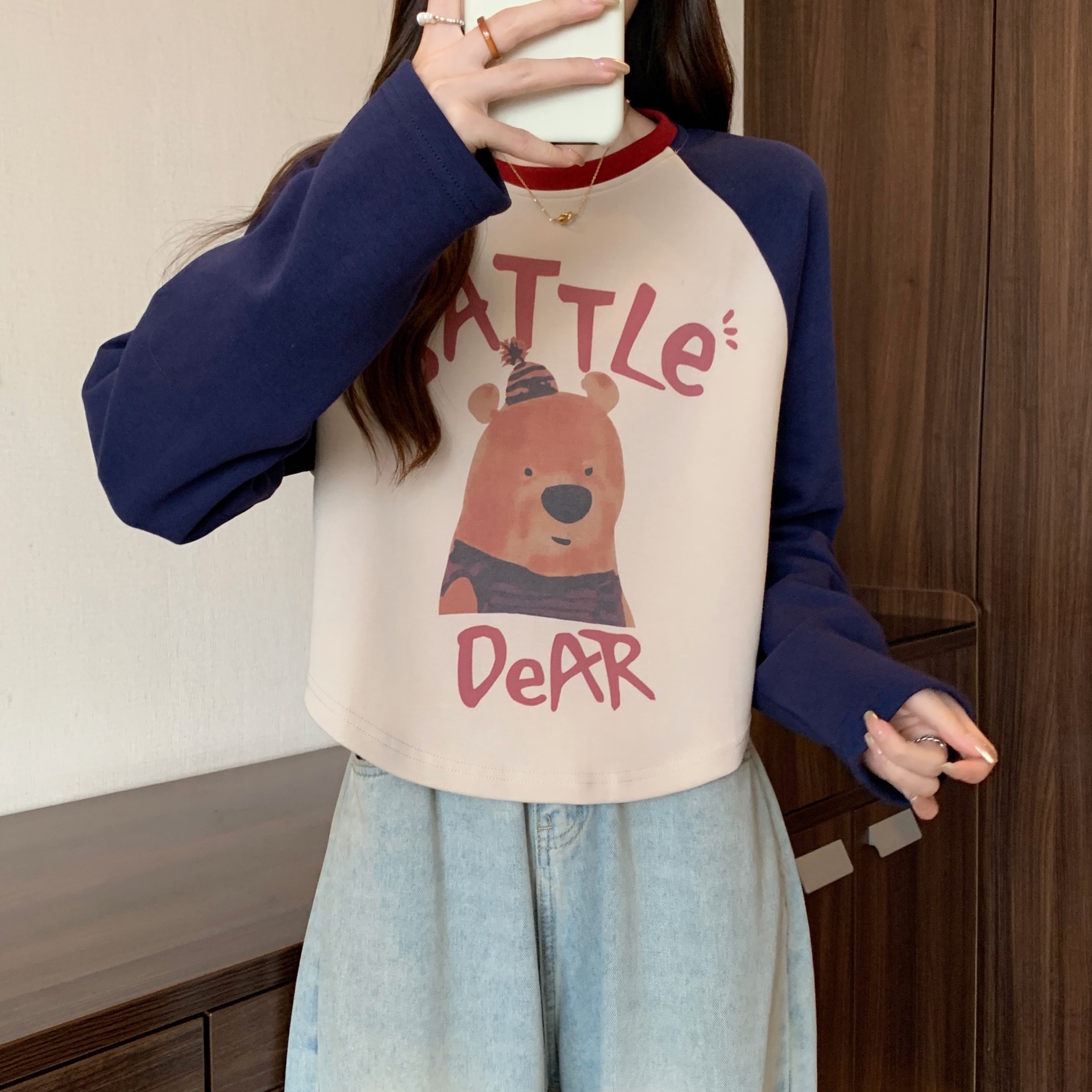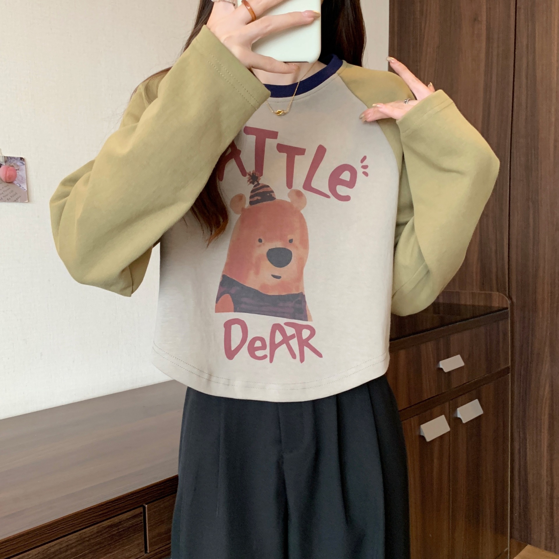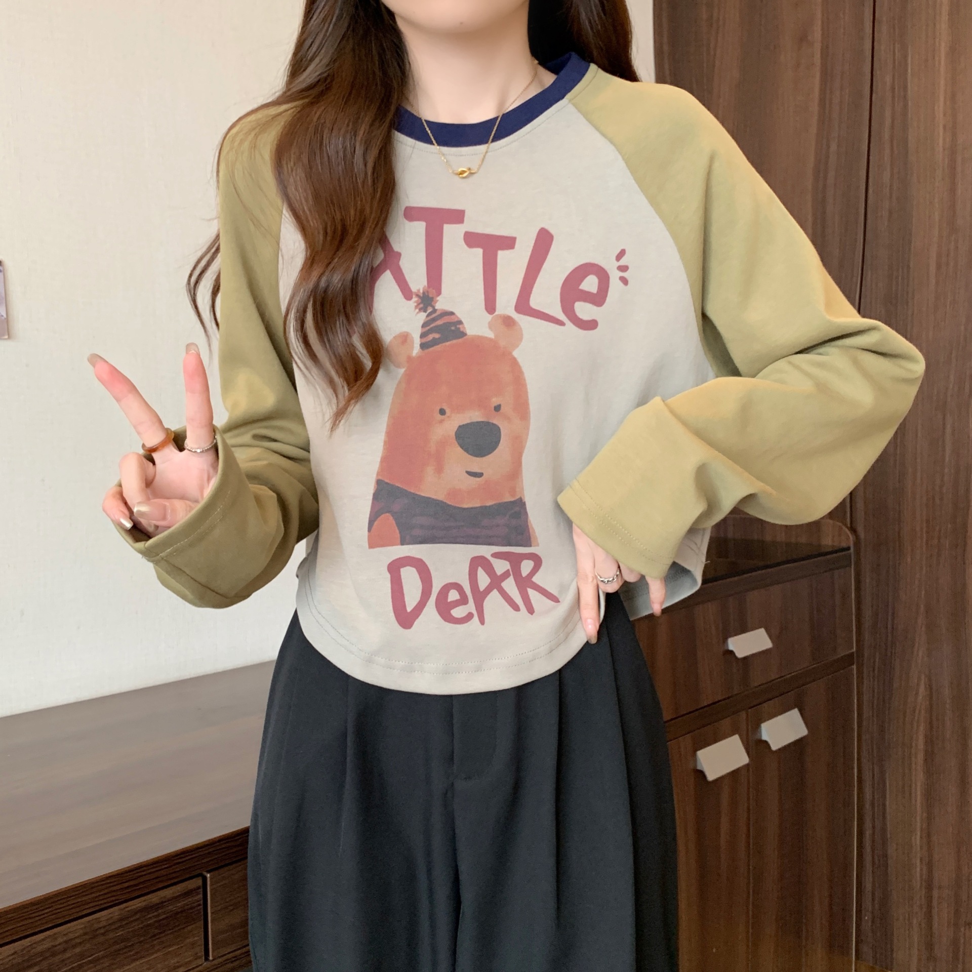 | nameOriginal | Thin Casual Loose Long-sleeved T-shirt Sweatshirt Women's Spring and Autumn plus size chubby girl Slimming Short Shoulder Base Top |