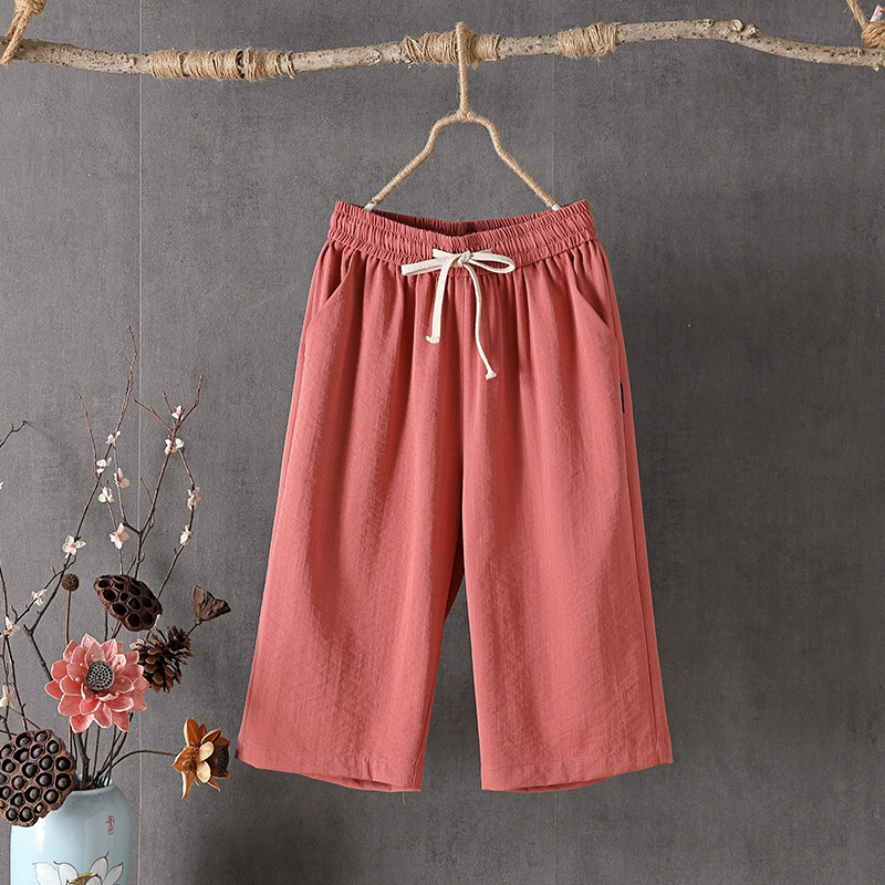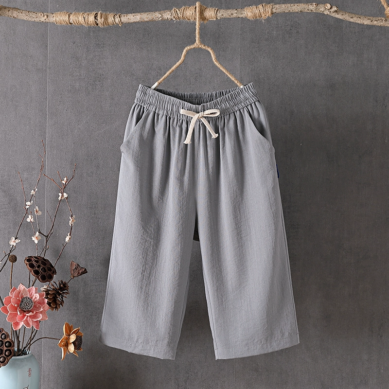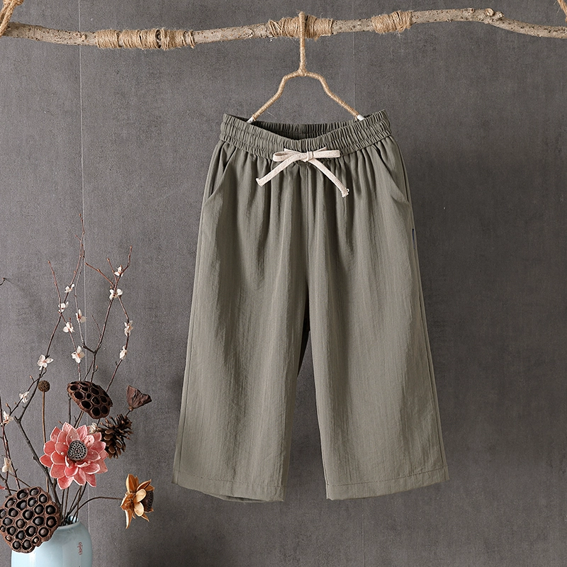 Thin casual loose slimming high waist cotton and linen pants