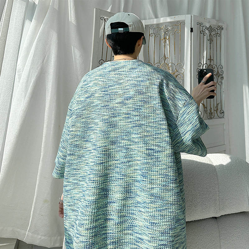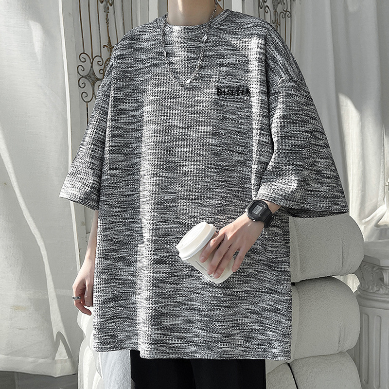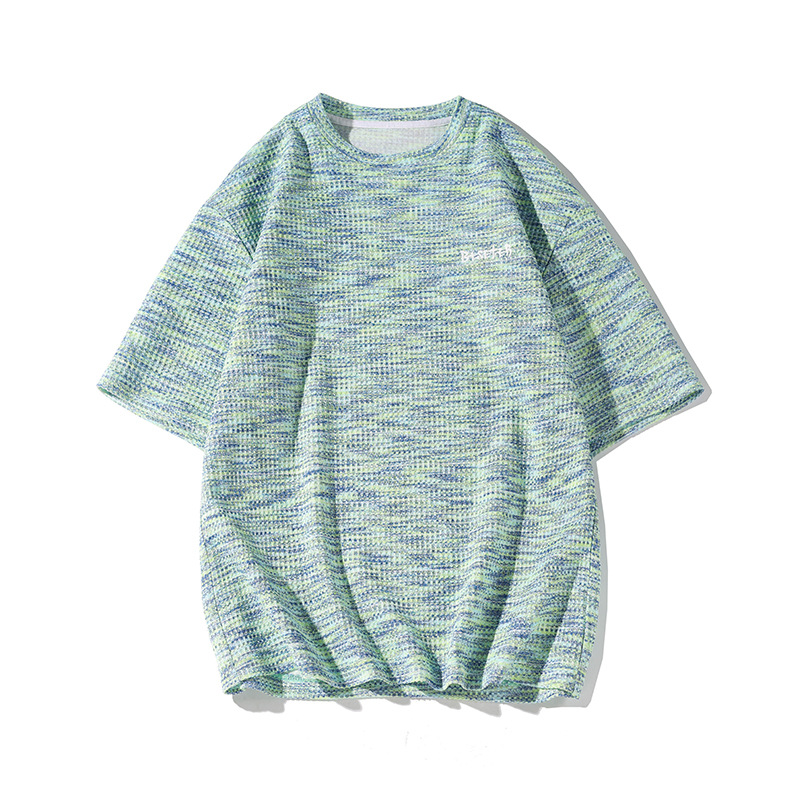 Thin Chanel Style Summer Style Short Sleeve T-shirt Men's Round Neck Design Jacquard Top Loose Tie-Dye
