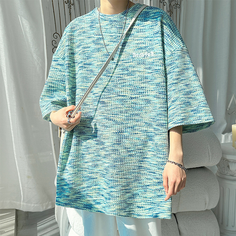 Thin Chanel Style Summer Style Short Sleeve T-shirt Men’s Round Neck Design Jacquard Top Loose Tie-Dye