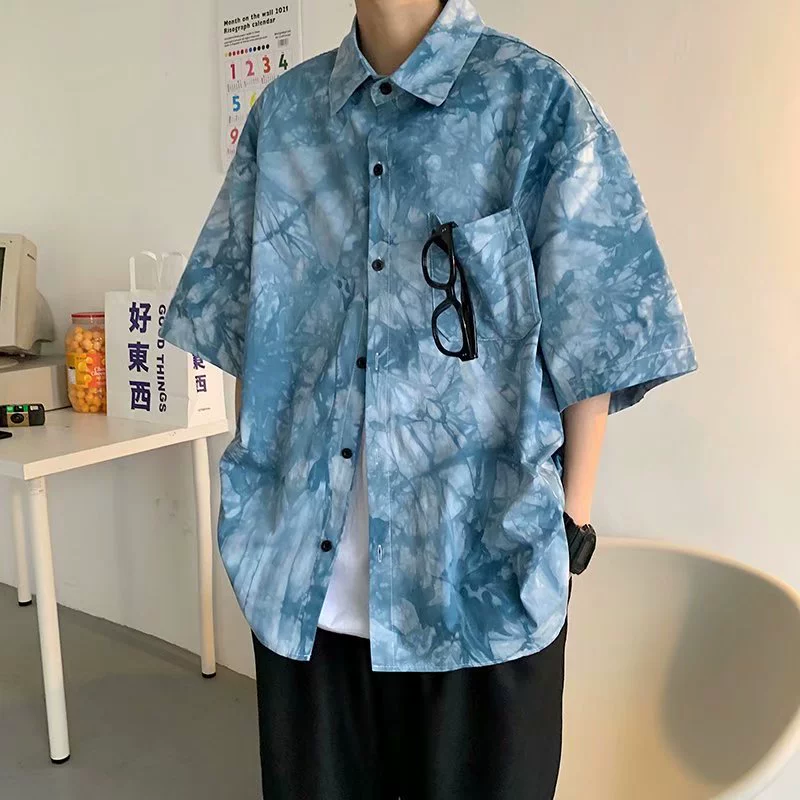Thin Hawaiian design tie-dye short-sleeved shirt