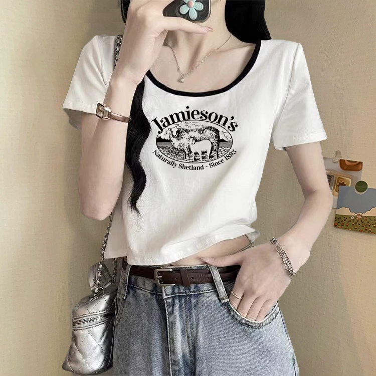 | nameOriginal | Thin high-end contrasting color pure cotton top short-sleeved T-shirt |