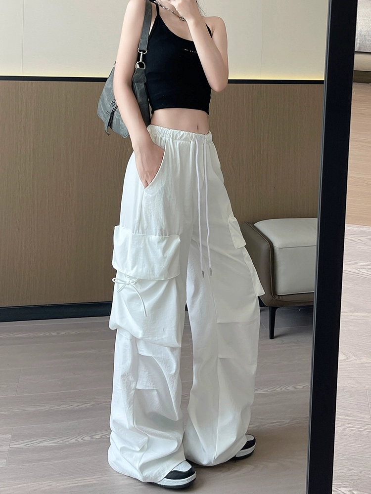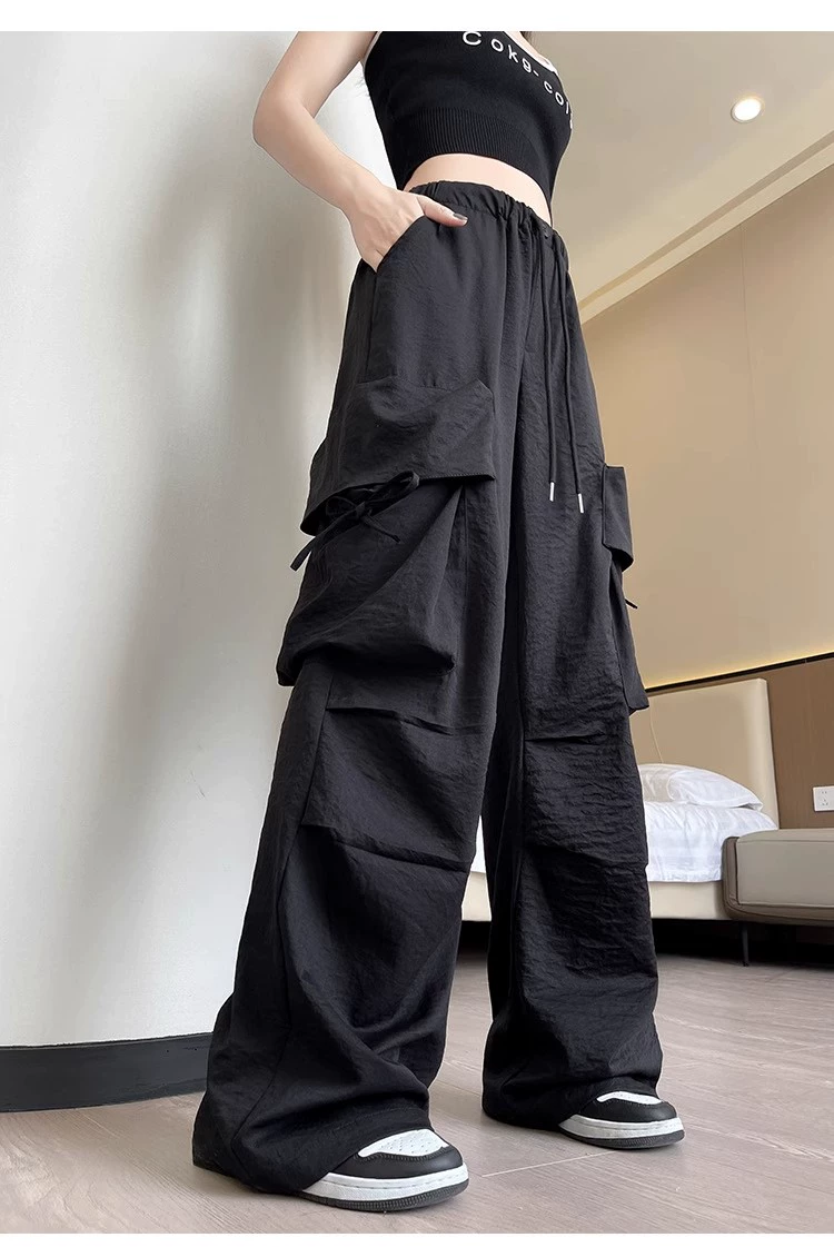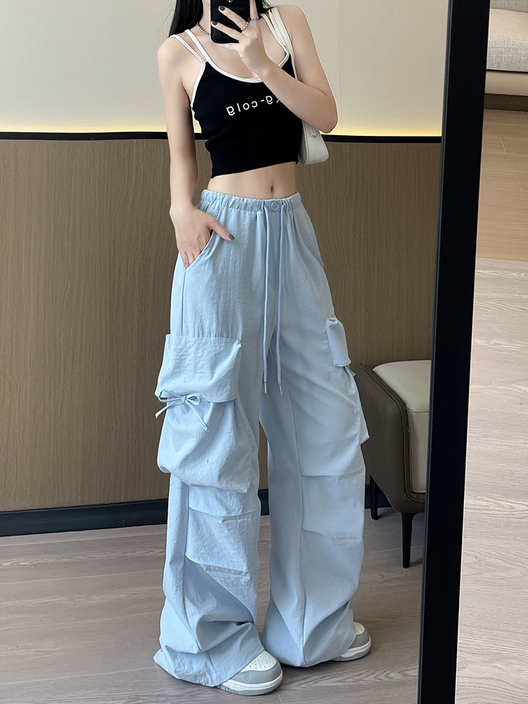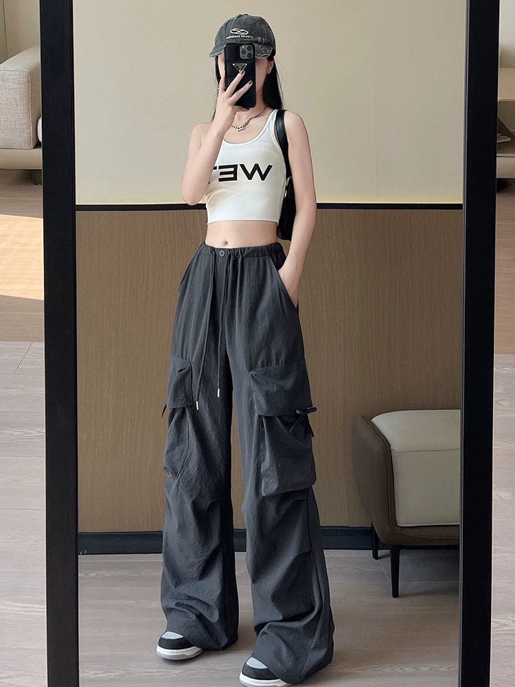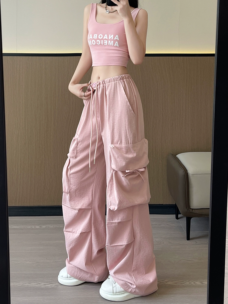 Thin high-waisted dopamine casual cargo pants with large pockets