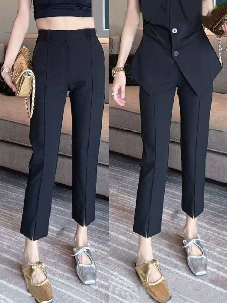 | nameOriginal | Thin high-waisted slit eight-point fat mm stretch trousers |