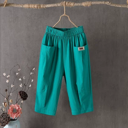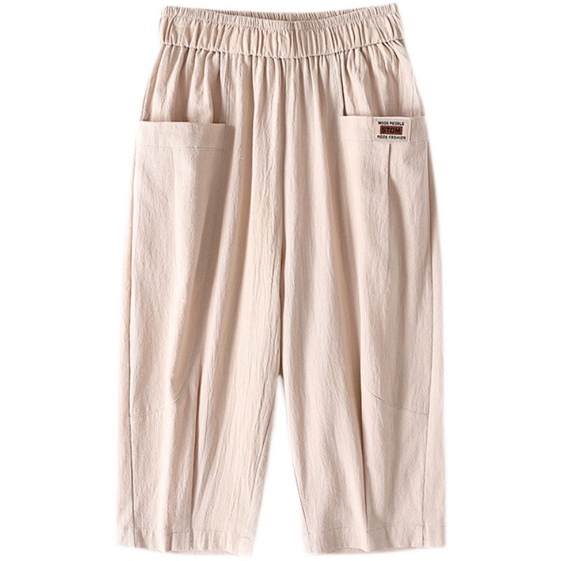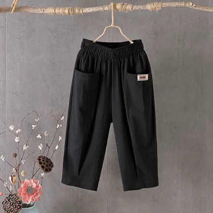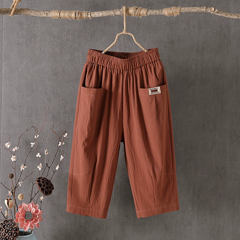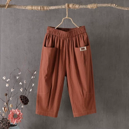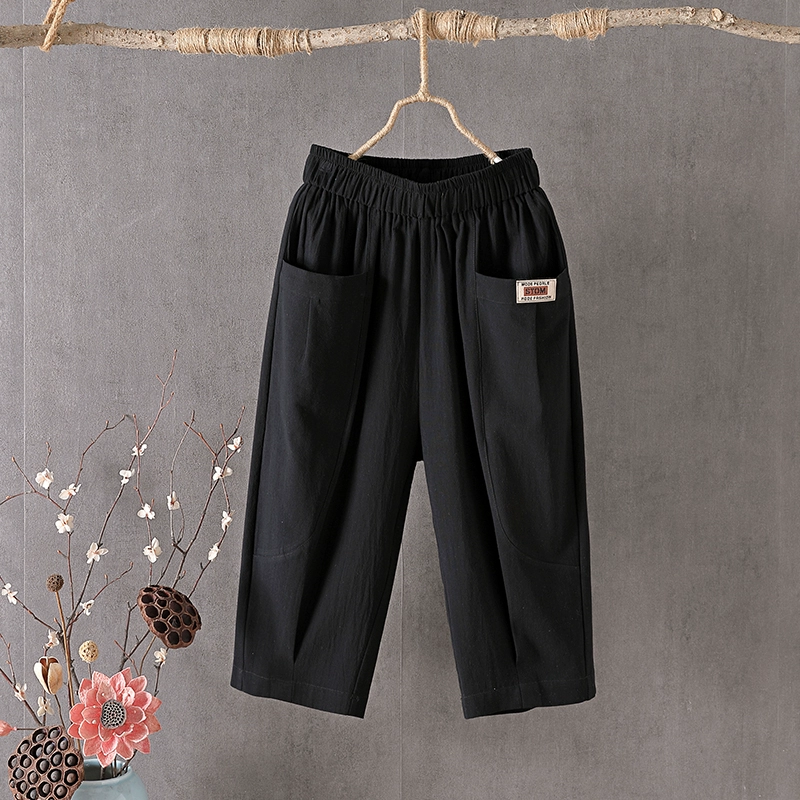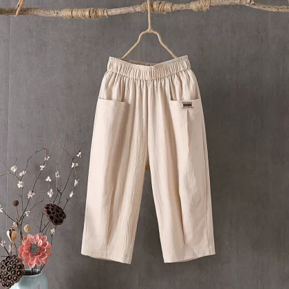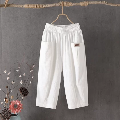 Thin linen loose high-waisted cropped pants for middle-aged and elderly people
