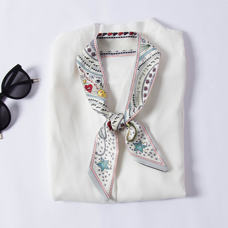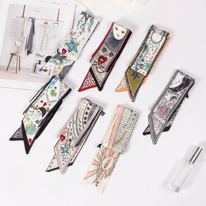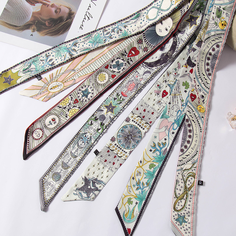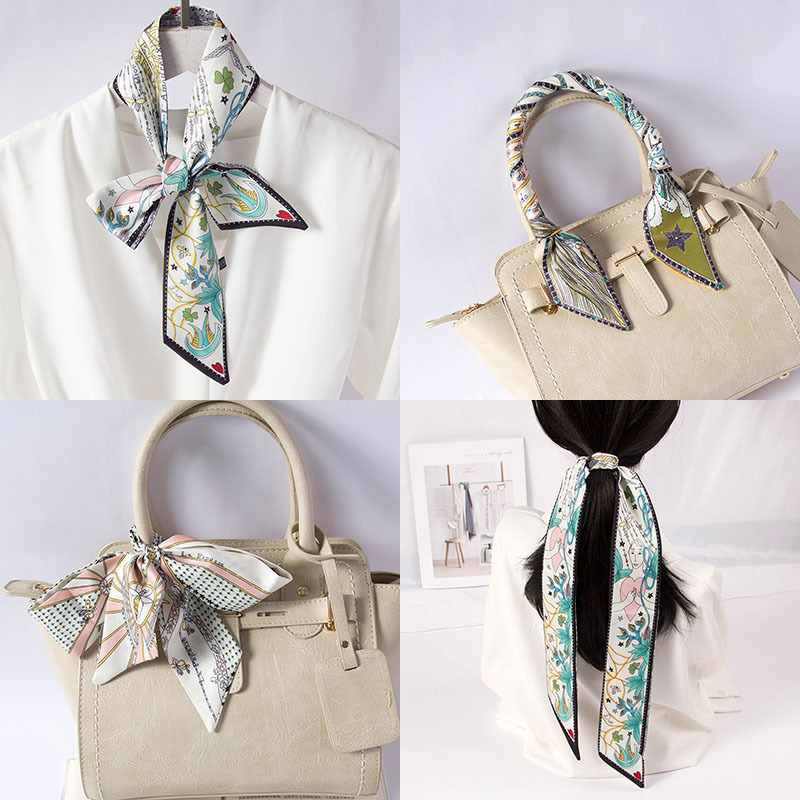 Thin Narrow Long Term Tie Bag Handle Ribbon Women’s Double-layer Double-sided Printed Decorative Hair Band Wrist Ribbon Small Scarf
