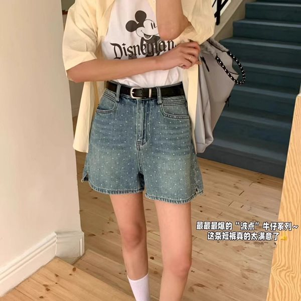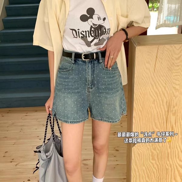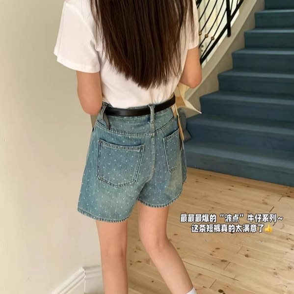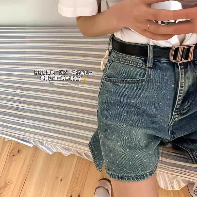 | nameOriginal | Thin Polka Dot High Waist Denim Wide Leg Shorts Women's 2024 Summer New Korean-style A- shape Slimming Straight Hot Pants |