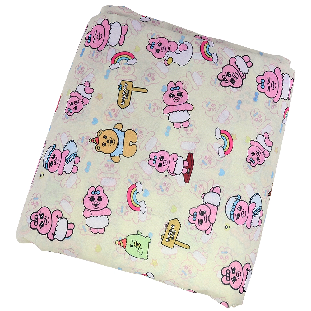 Thin polyester cotton cute pink bunny print handmade diy shirt skirt clothing baby clothes fabric bed sheets tablecloth