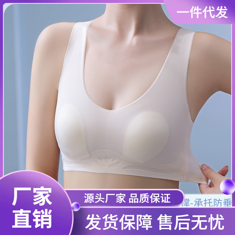 Thin Rabbit Ear Traceless Underwear Women’s Cool Sense Breathable Semi-fixed Vest Large Chest Small Tube Bra